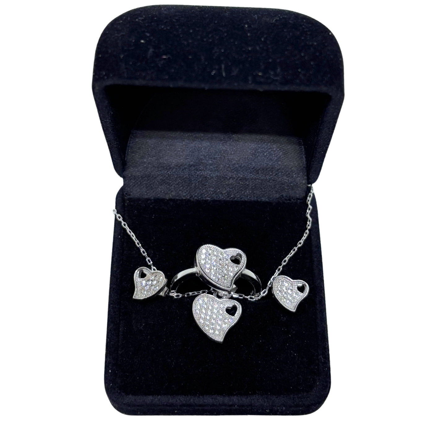 Aşk Işıltılı Çift Kalp Gümüş Set&Takım