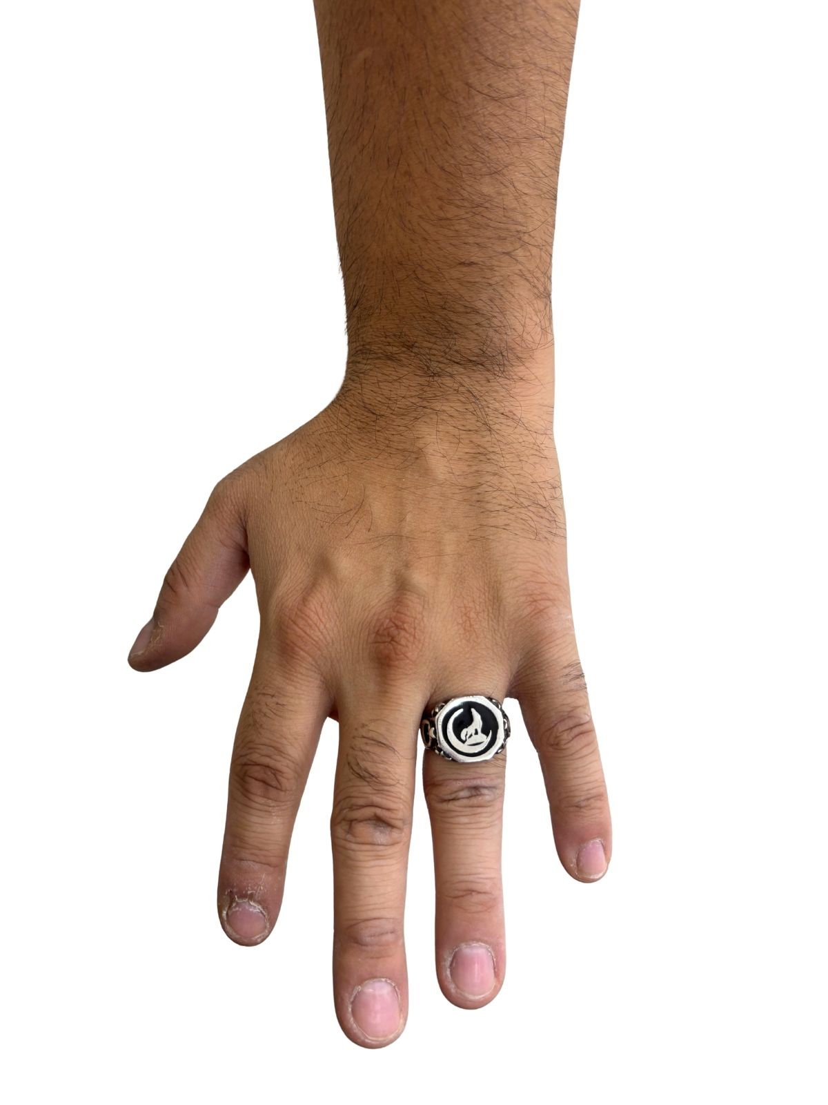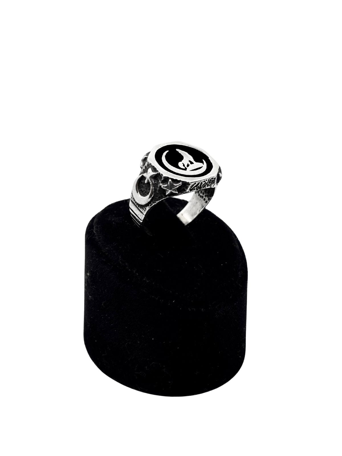 Yuvarlak Mineli Hilal Bozkurt Gümüş Erkek Yüzük