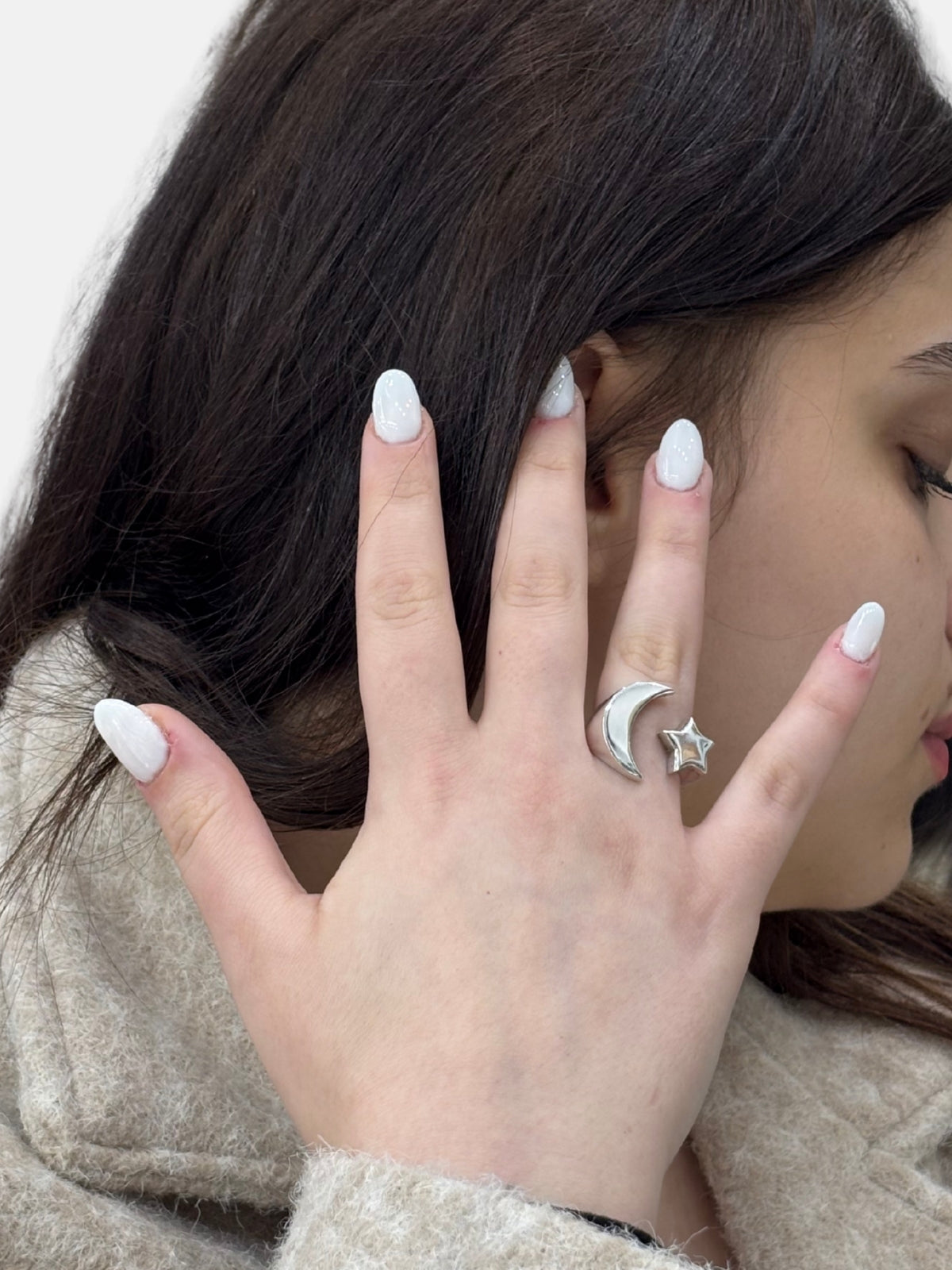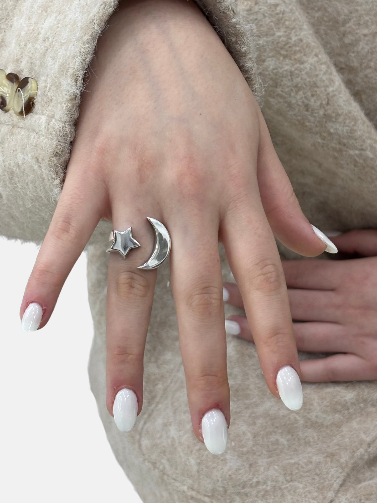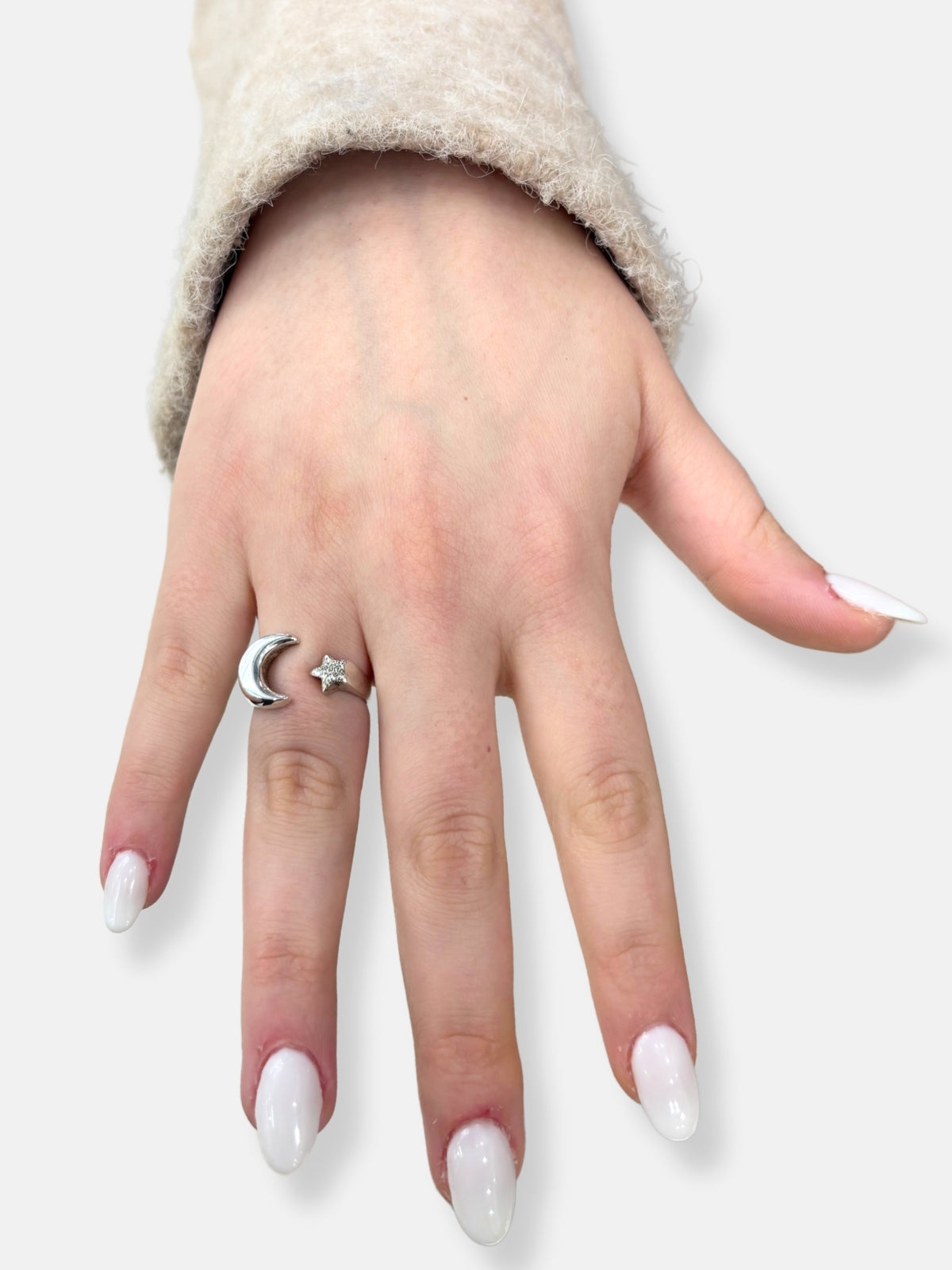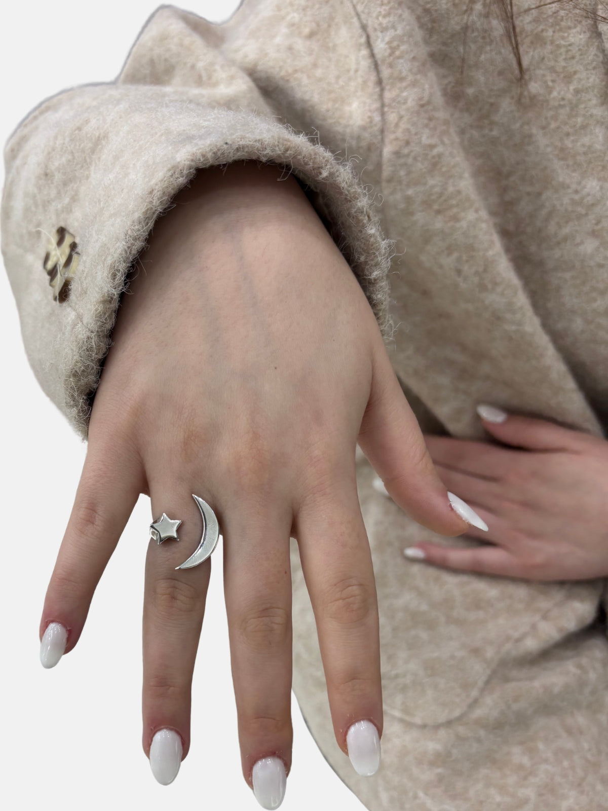 Ay Yıldız Ayarlanabilir Gümüş Kadın Yüzük