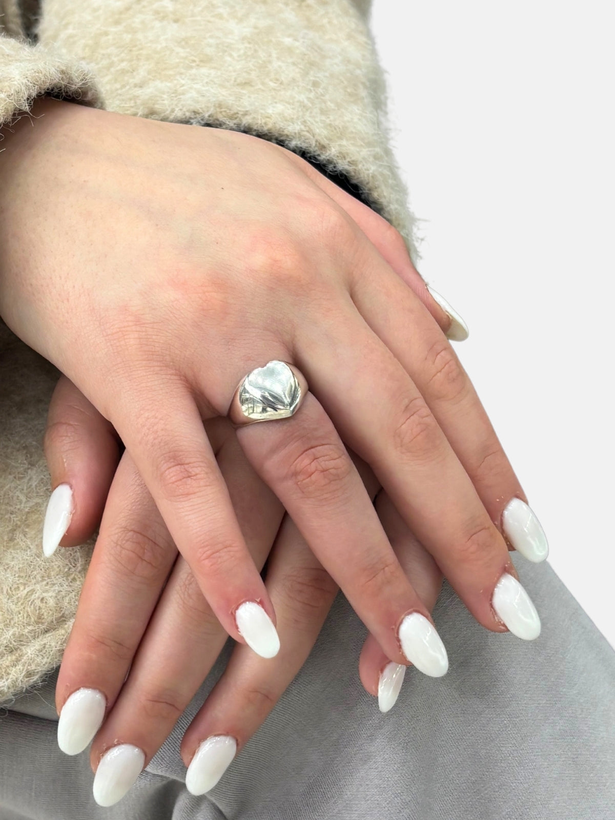 Cilalı Kalp Modern Tasarım Gümüş Kadın Yüzük – Aşkın Parlayan Simgesi