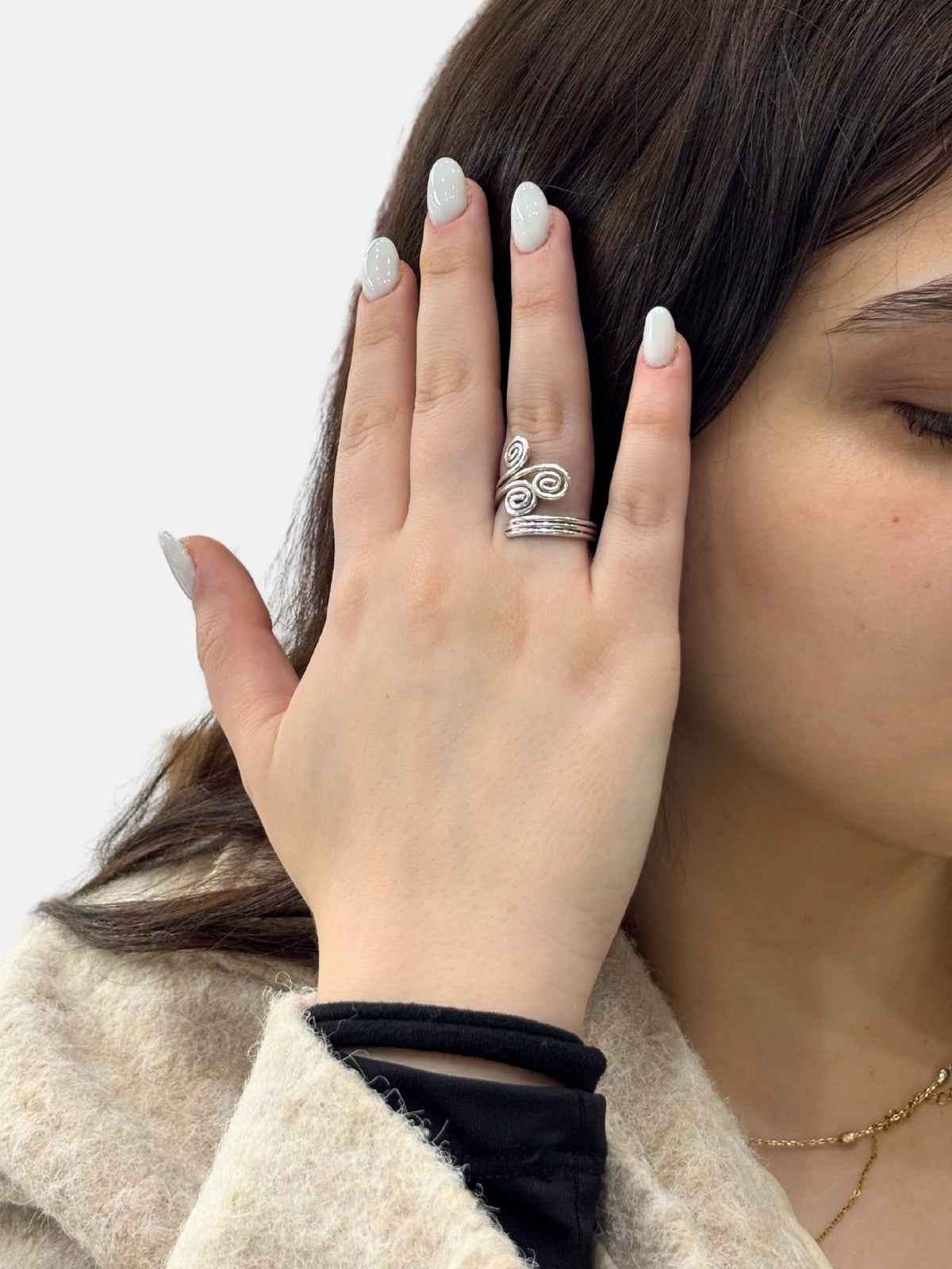 Sarmal Tasarım Ayarlanabilir Modern Tasarım Gümüş Kadın Yüzük – Hareketin ve Zarafetin Buluşması