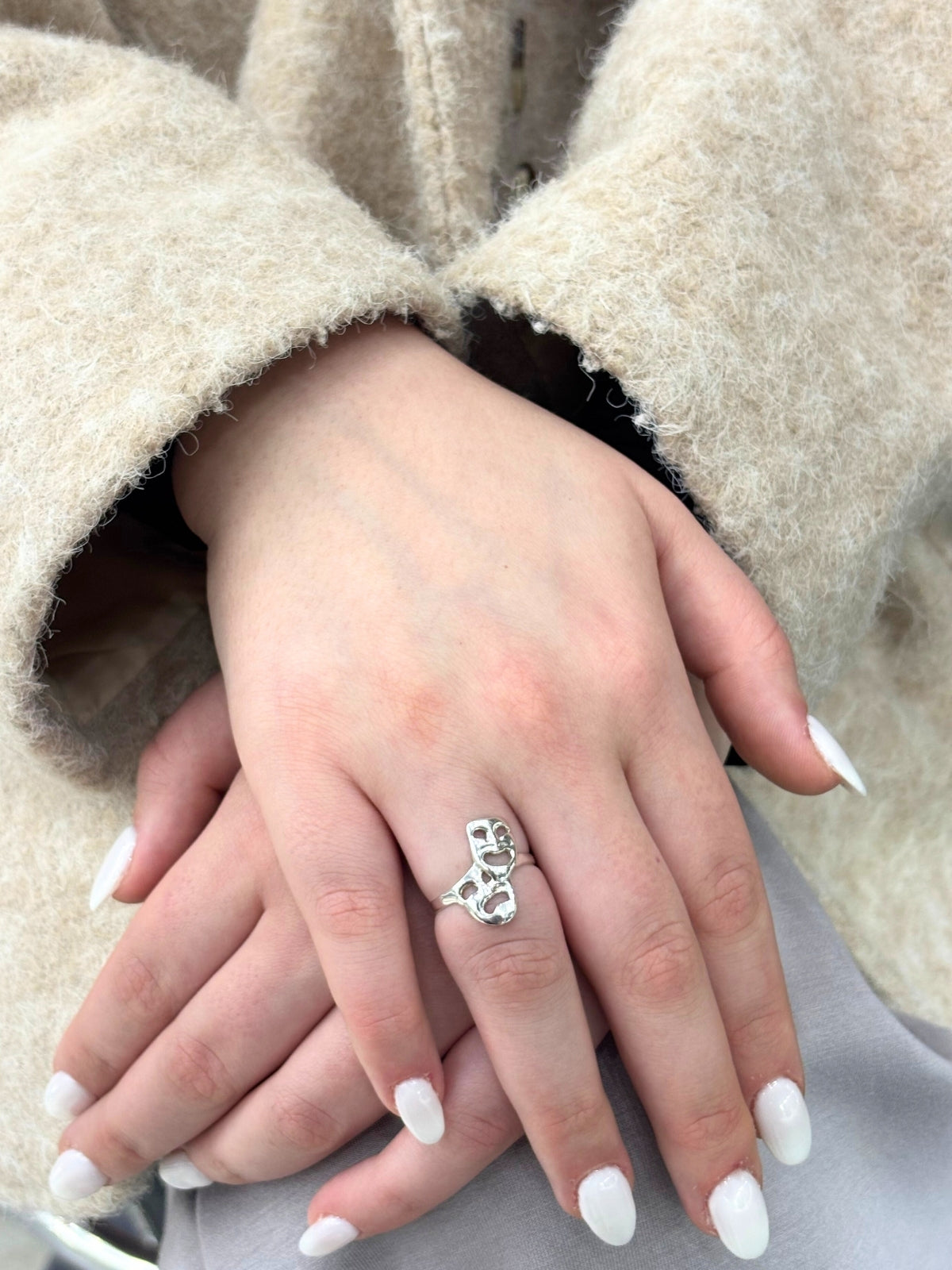 Tiyatro Sahne Maskesi Modern Tasarım Gümüş Kadın Mask Yüzük
