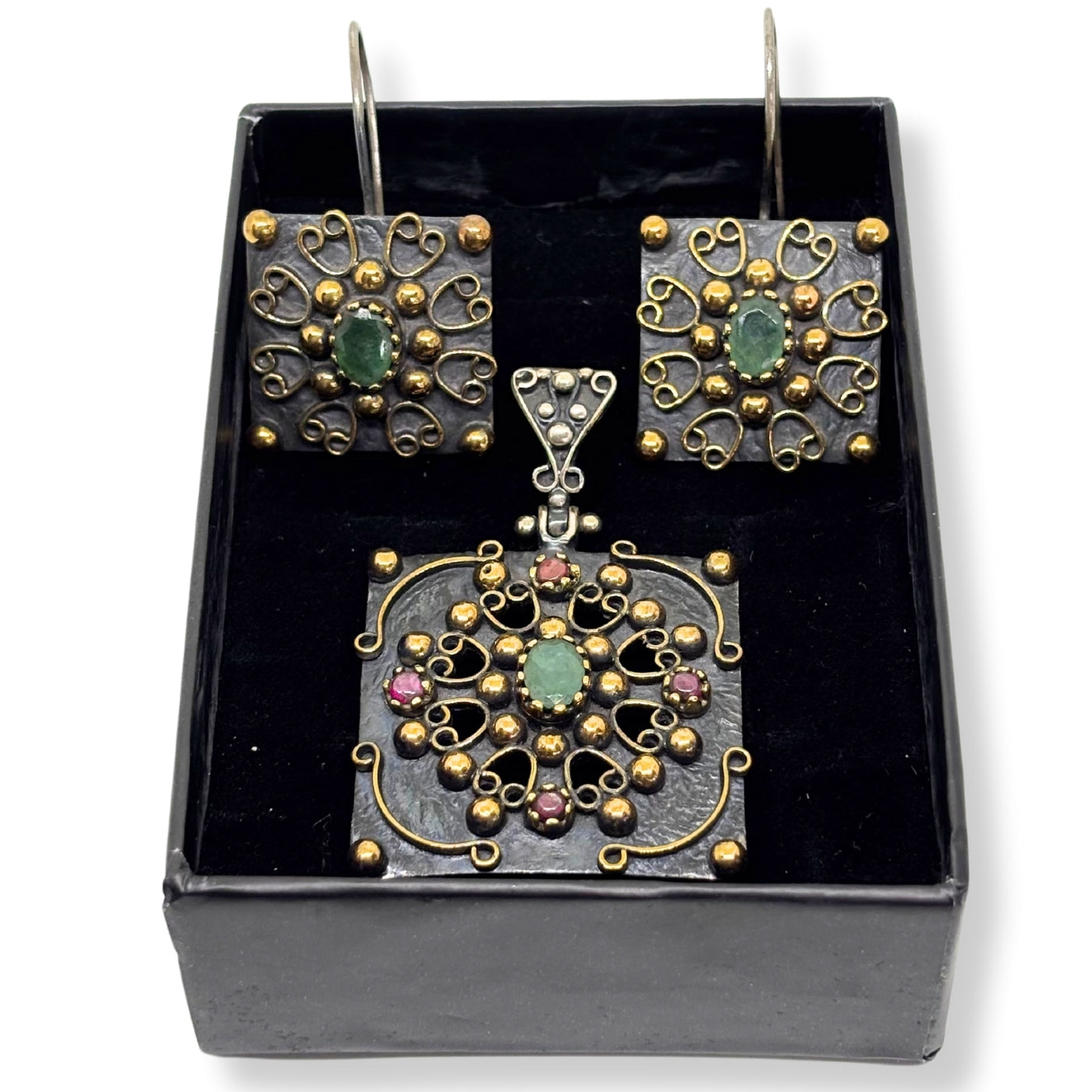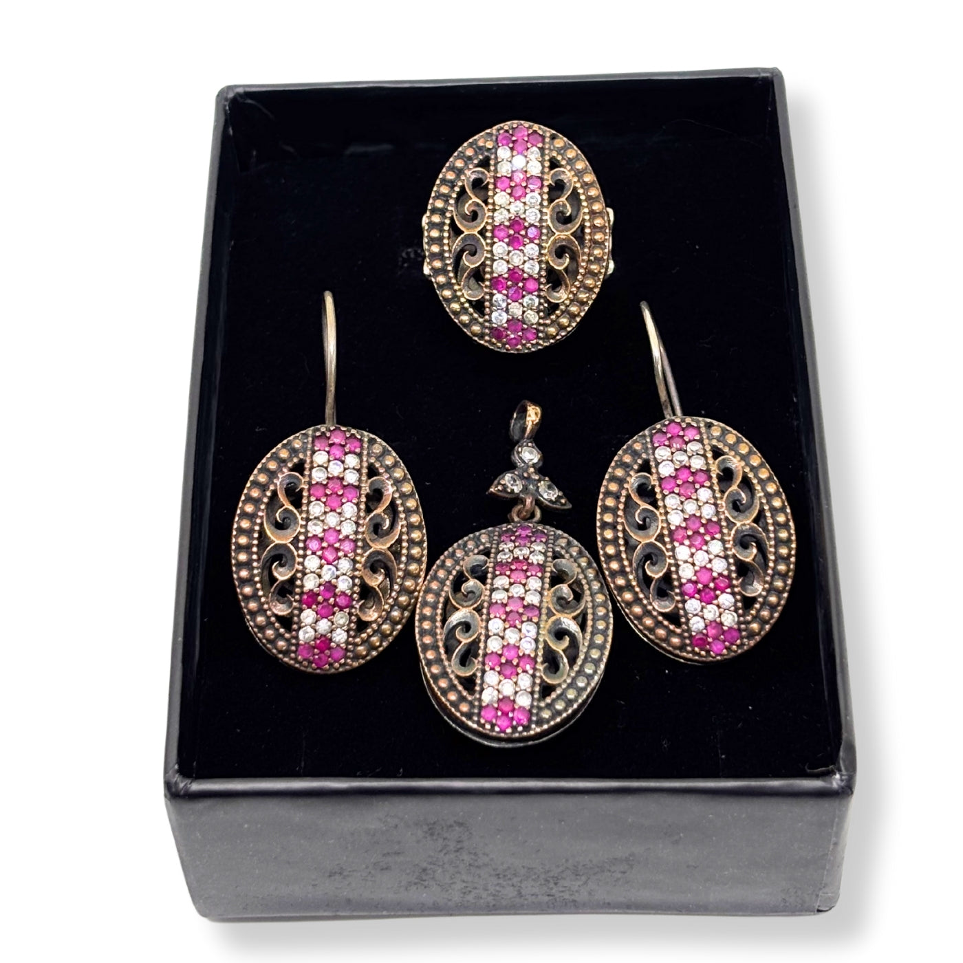 Authentic İri İşlemeli Işıltılı Gümüş Set&Takım