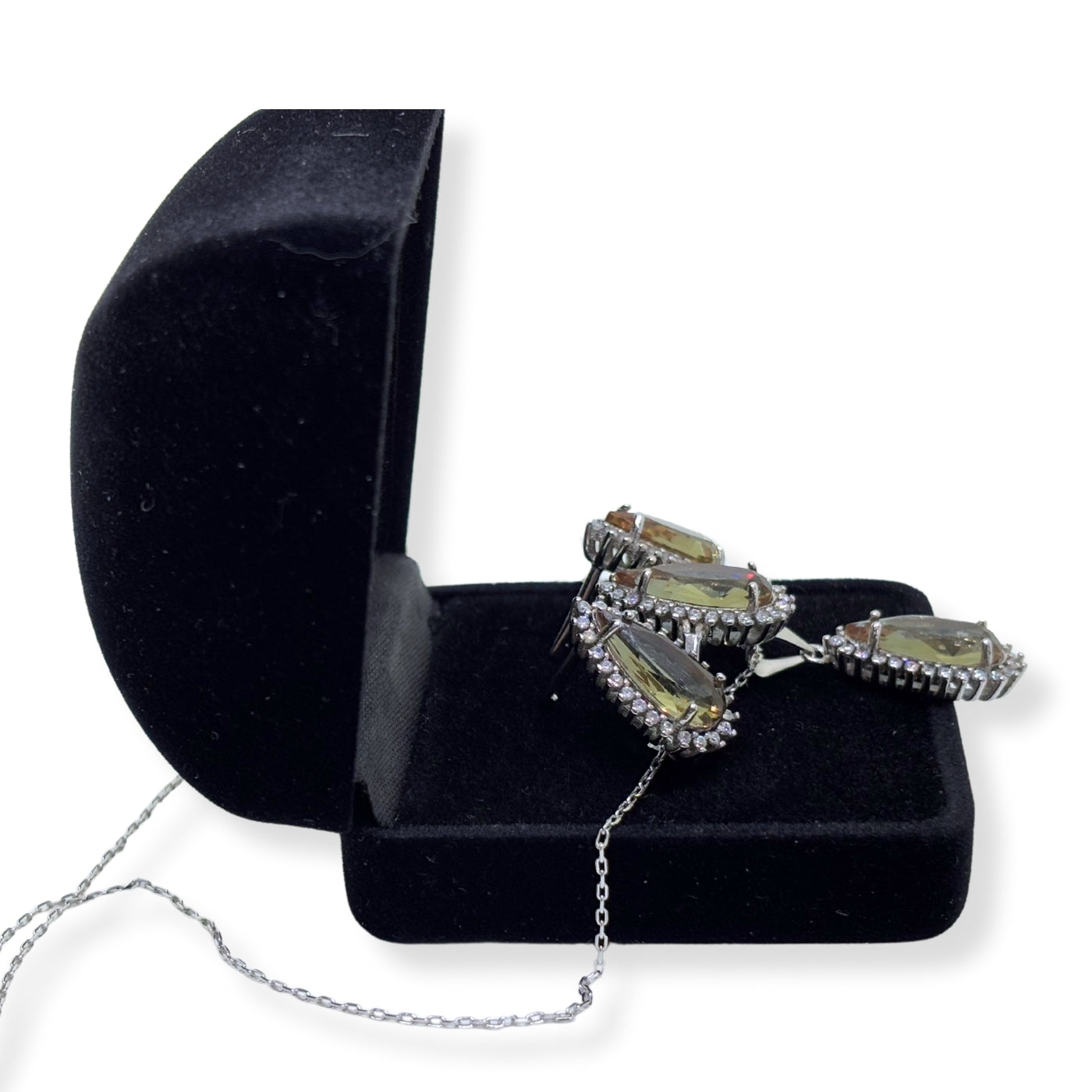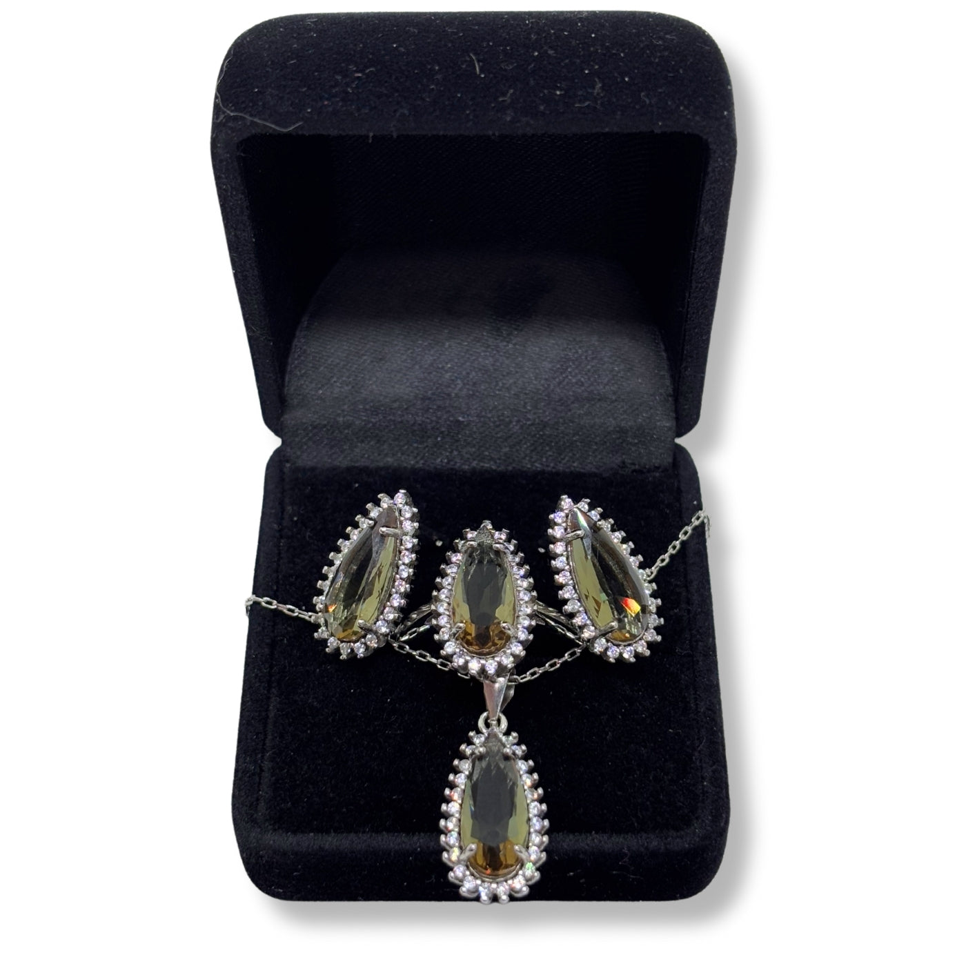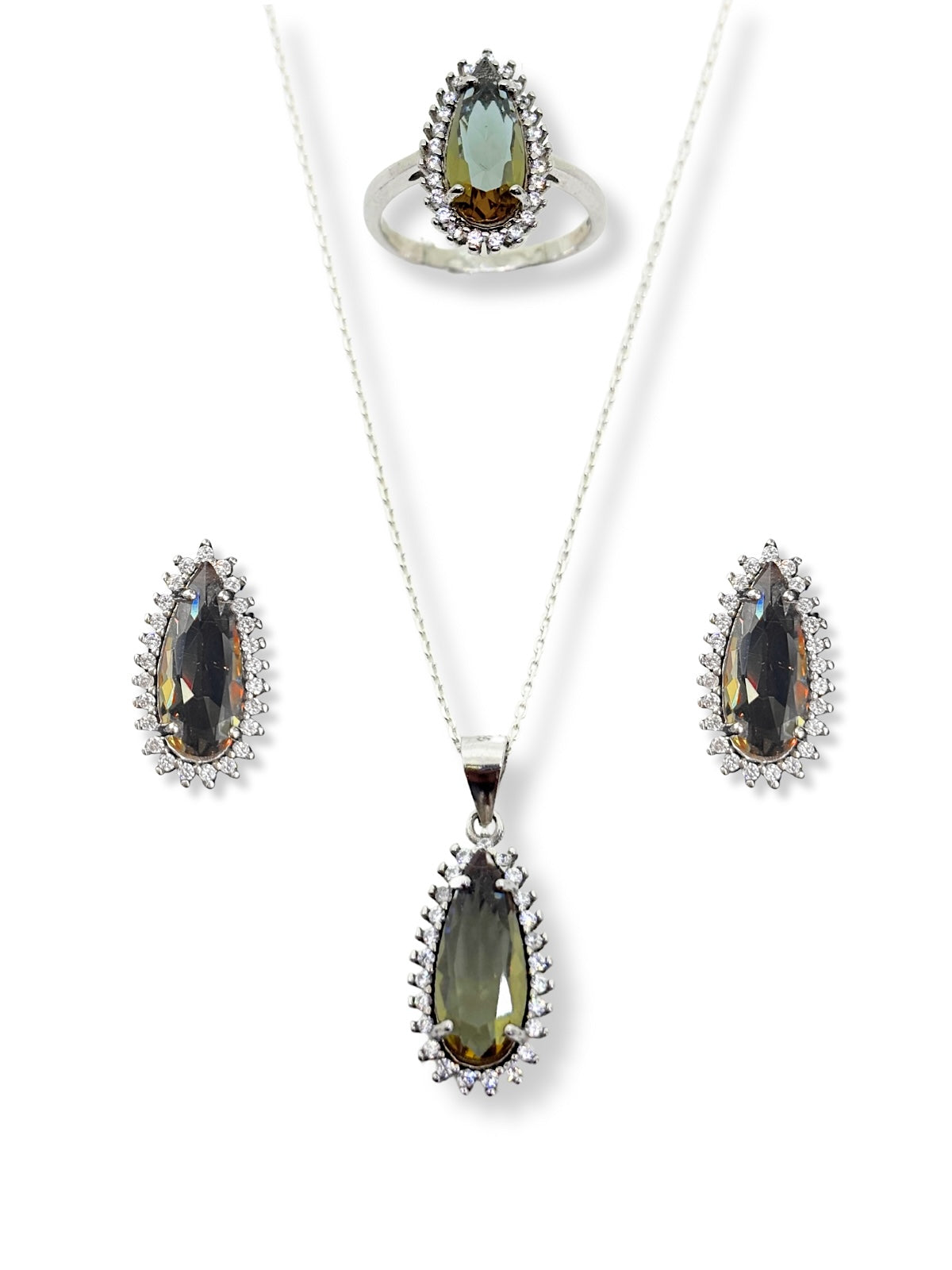 Pear Kesim Zultanit Taşlı Kadın Gümüş Set&Takım