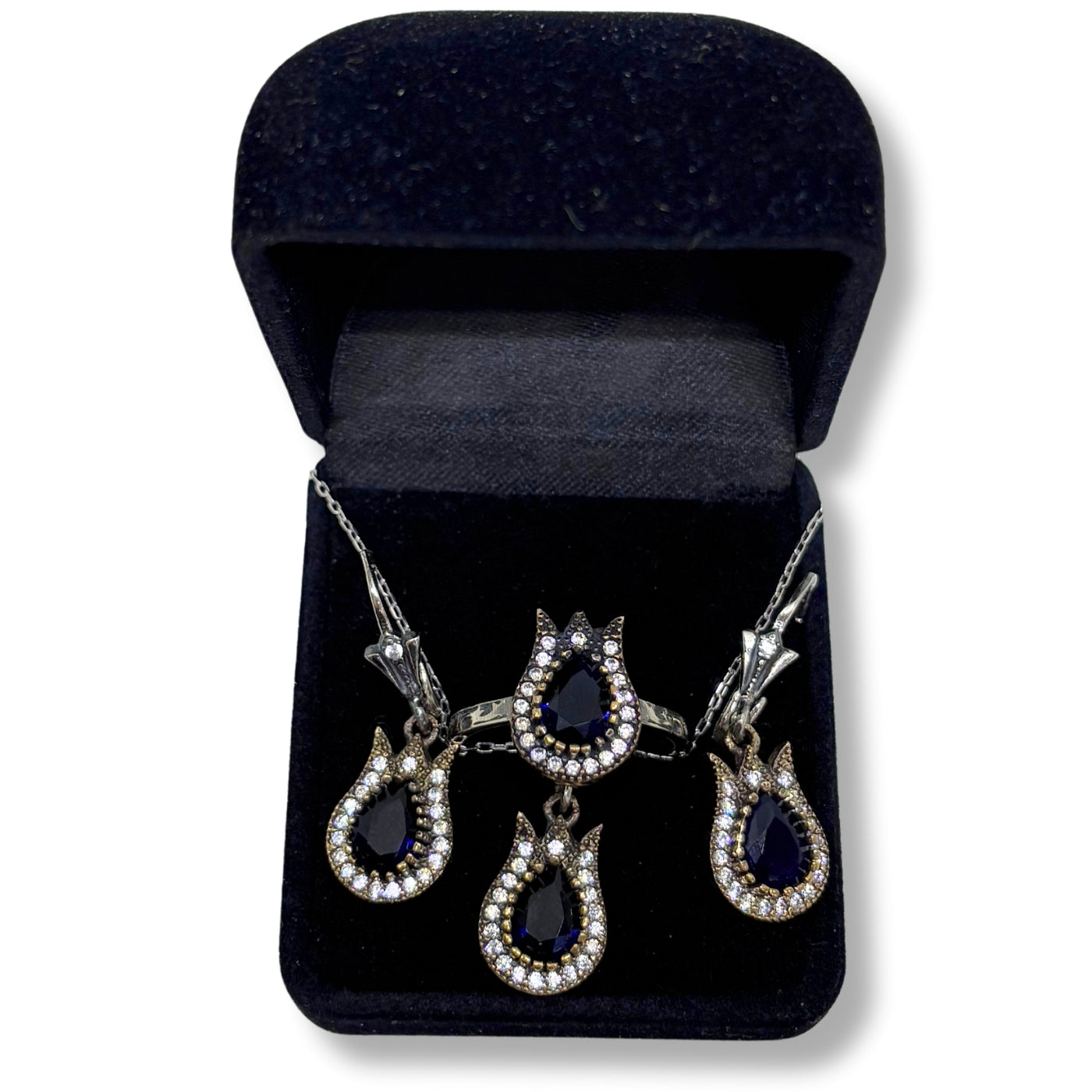 Işıltılı Safir Lale Gümüş Set&Takım - Mücevher Bahçesi Koleksiyonu