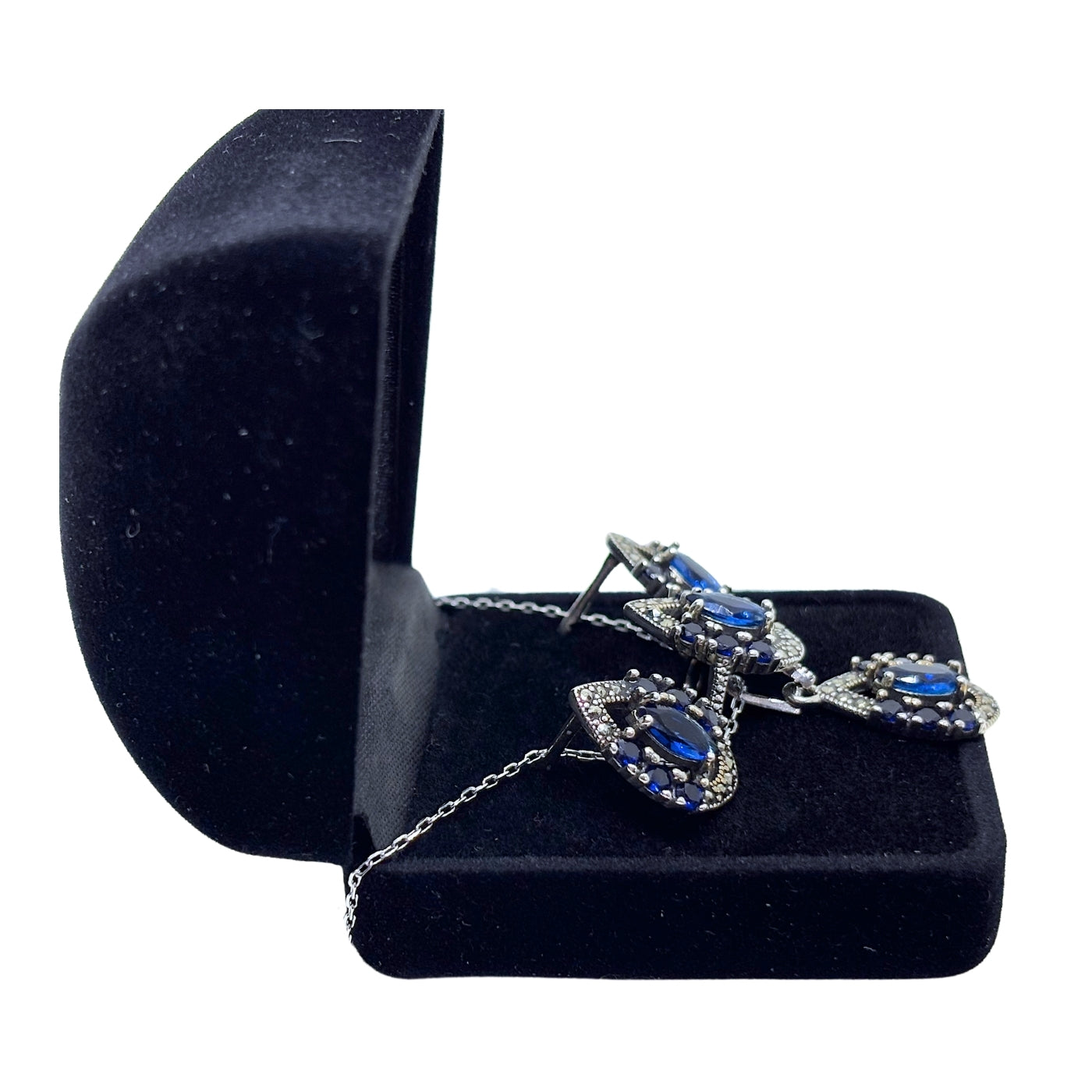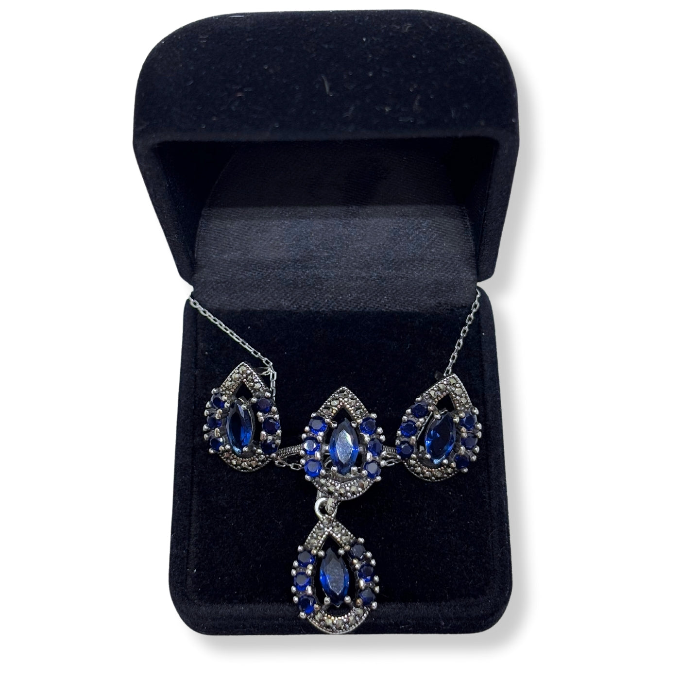 Lacivert Işıltılı Gümüş Damla Markazit Set&Takım