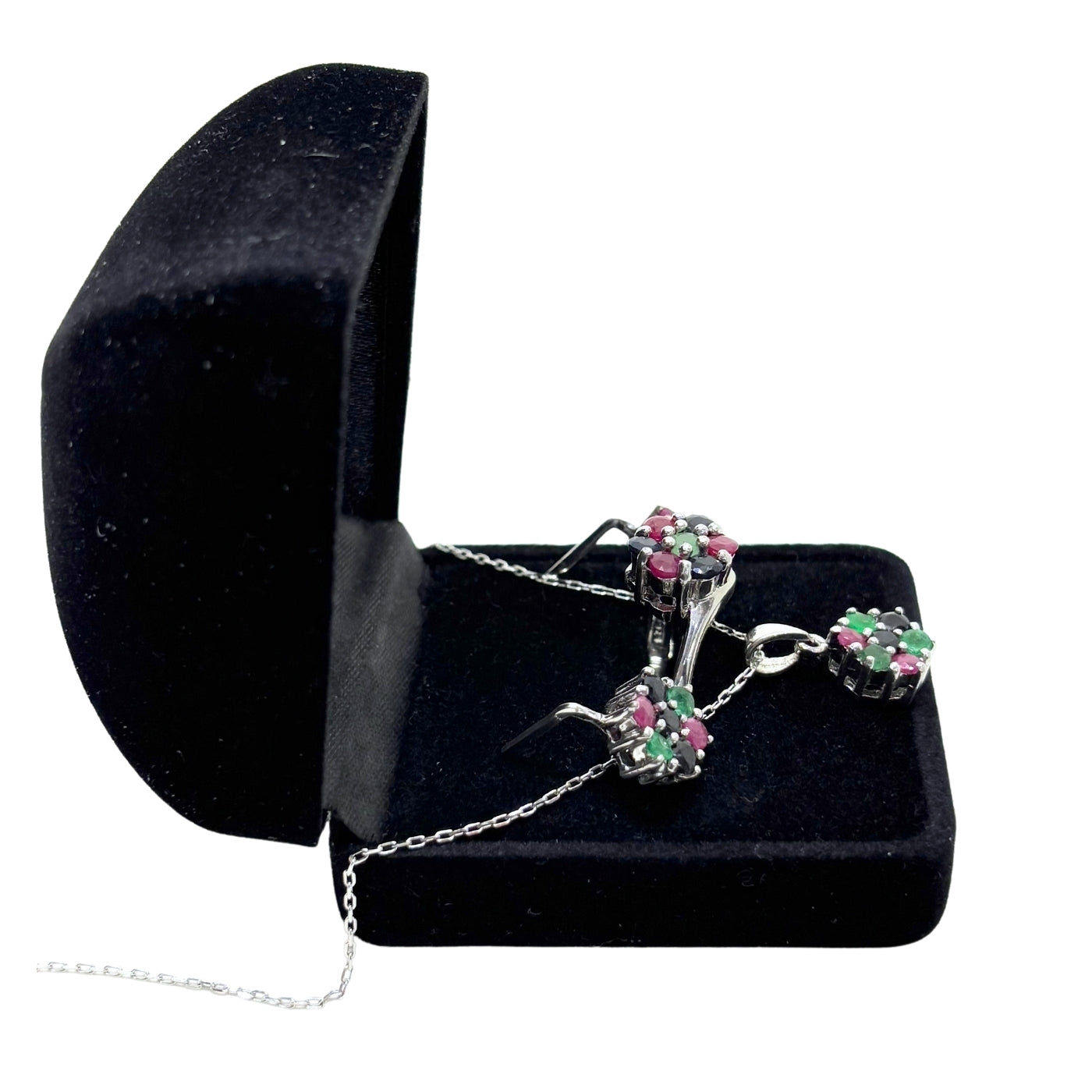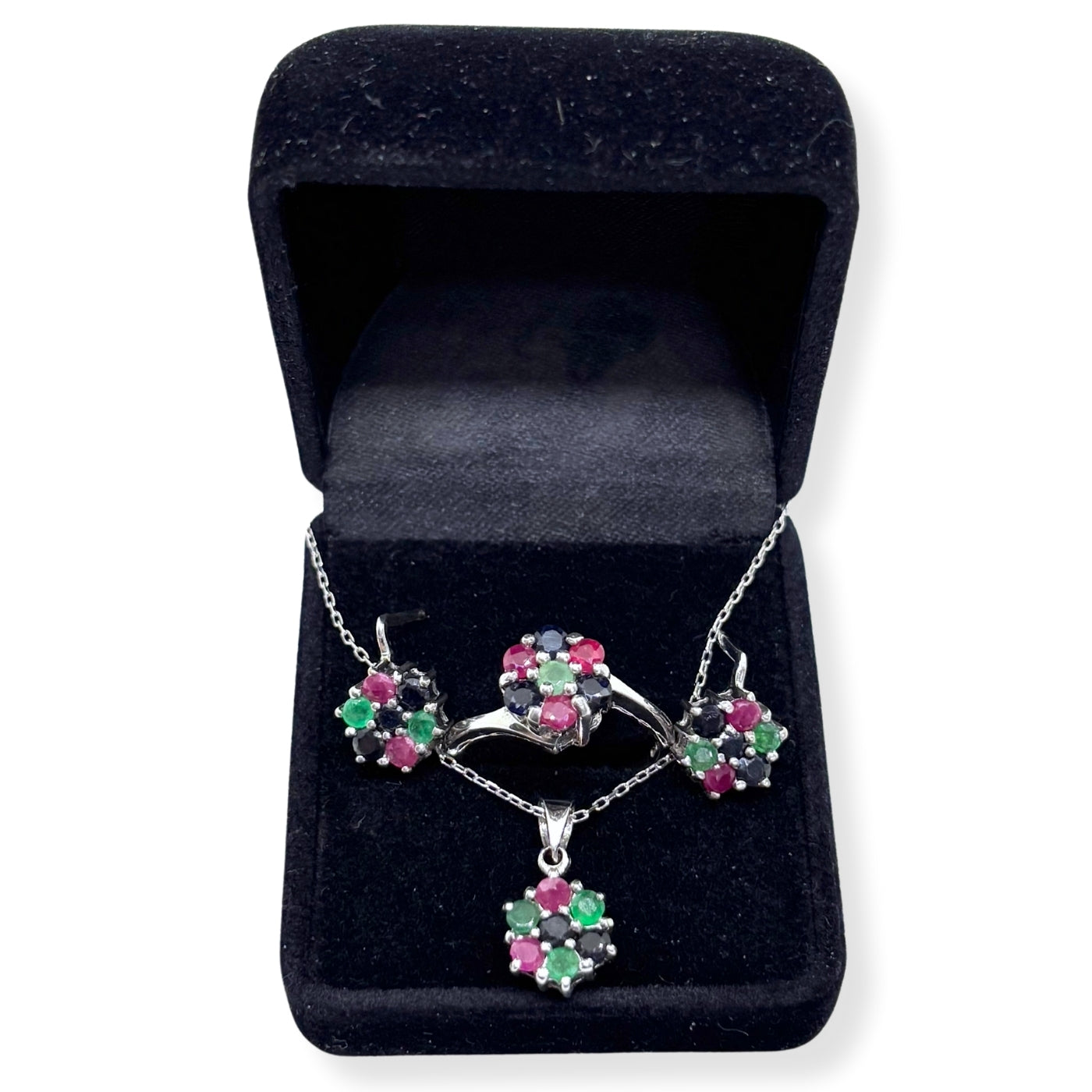 Renk Baharı Gümüş Yakut ve Zümrüt Işıltılı Set &Takım
