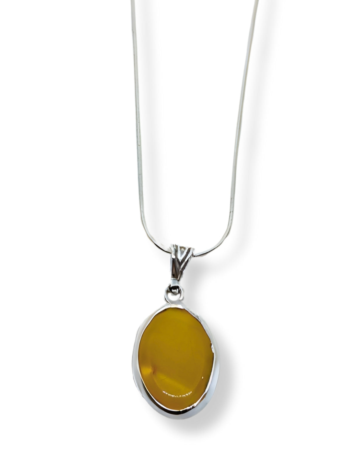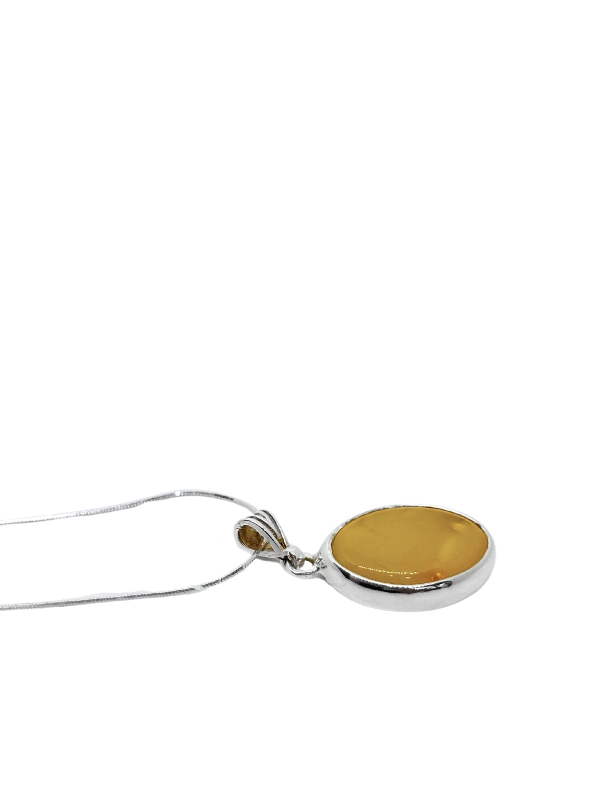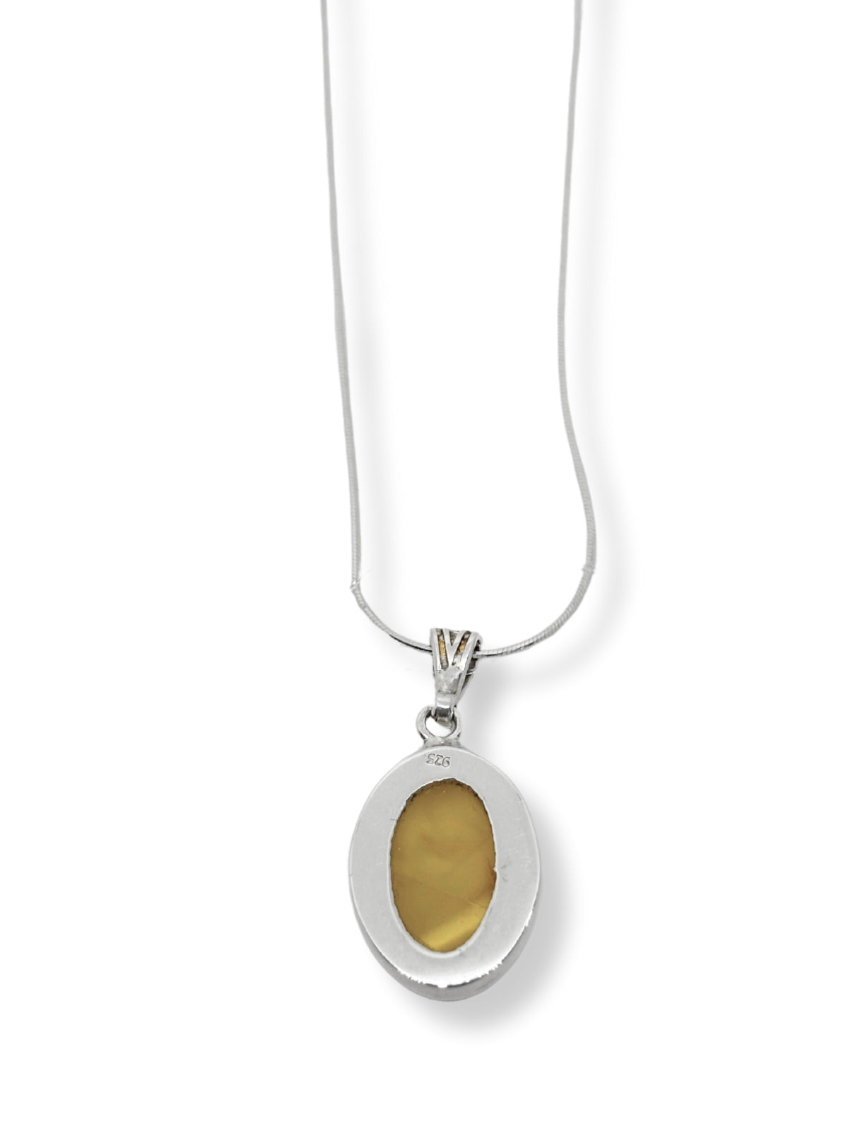 Oval Çerçeveli Açık Ton Kehribar Işıltısı Kadın Gümüş Kolye