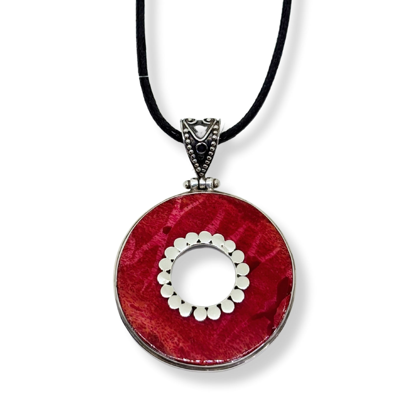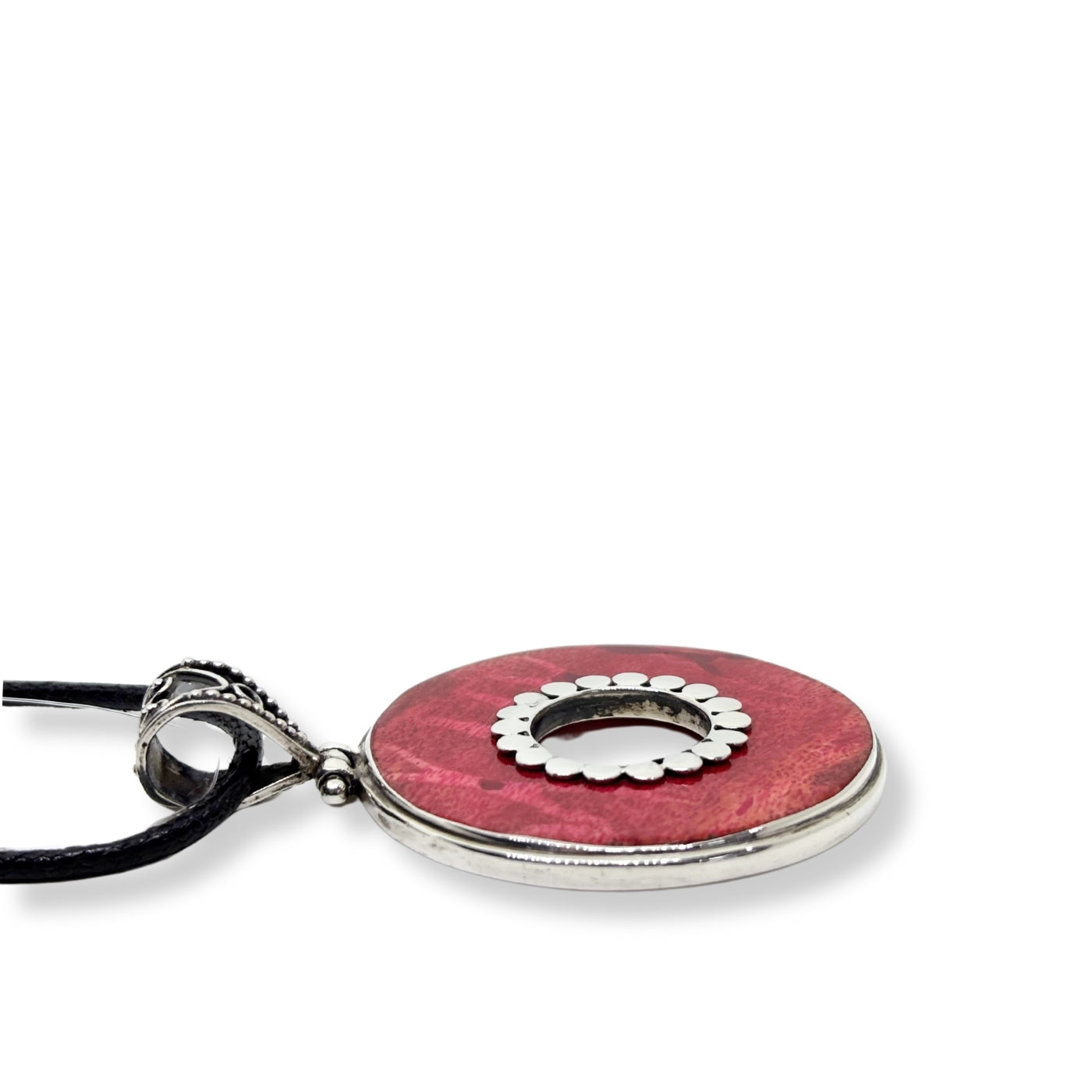Yuvarlak Düz Mercan Doğal Taş Gümüş Kadın Kolye
