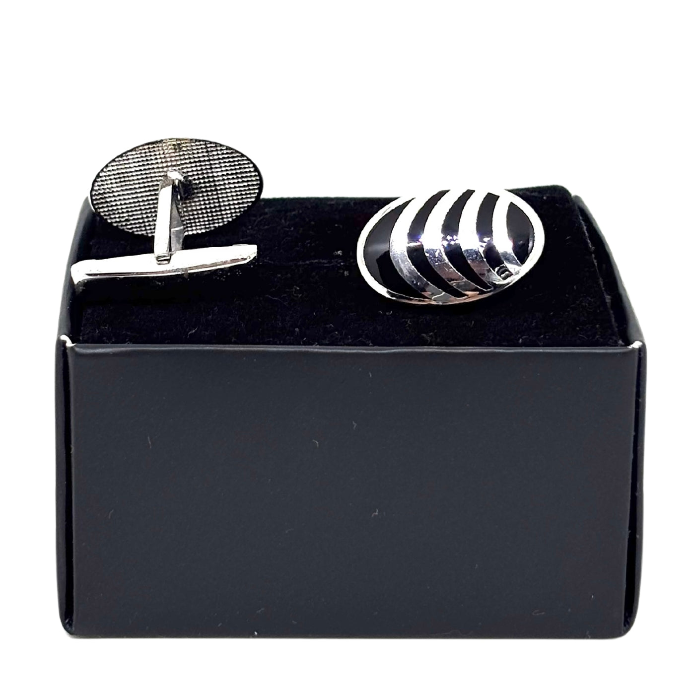 Gümüş Siyah Mineli Oval Kol Düğmesi