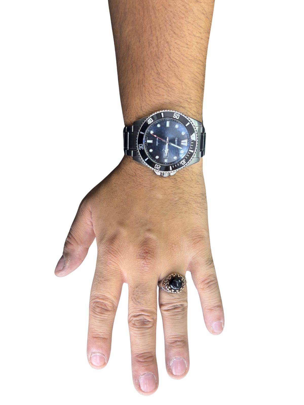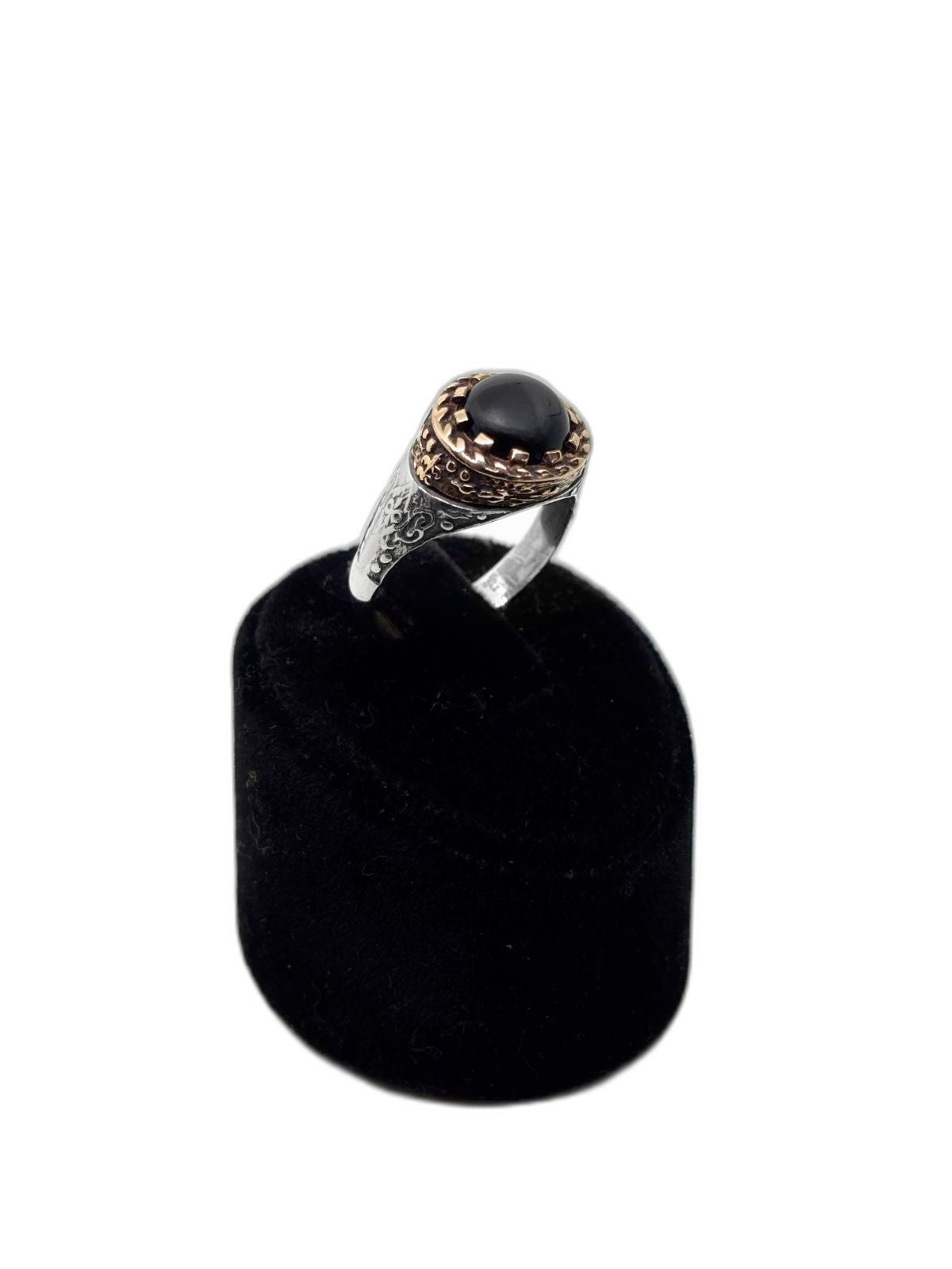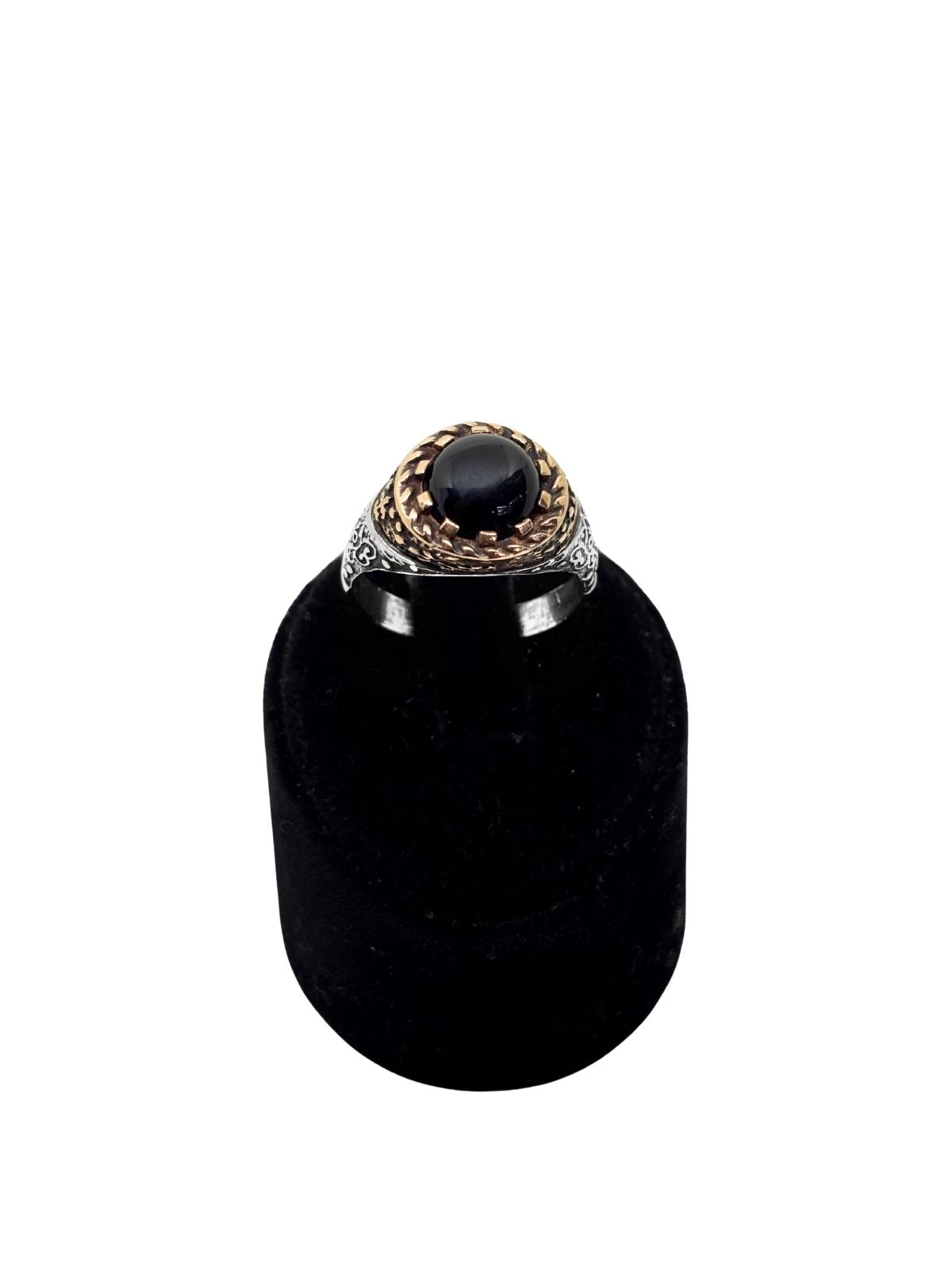 Yuvarlak Oniks Taşlı Gümüş Erkek Yüzük
