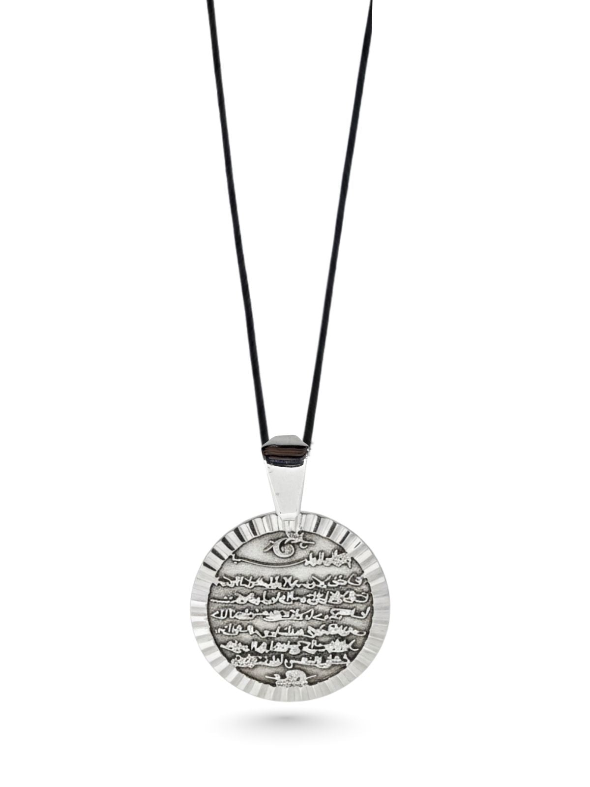 Yuvarlak Lazer Çerçeveli Gümüş Ayetel Kürsi Kolye 3.5x2.4cm [OYSY172]