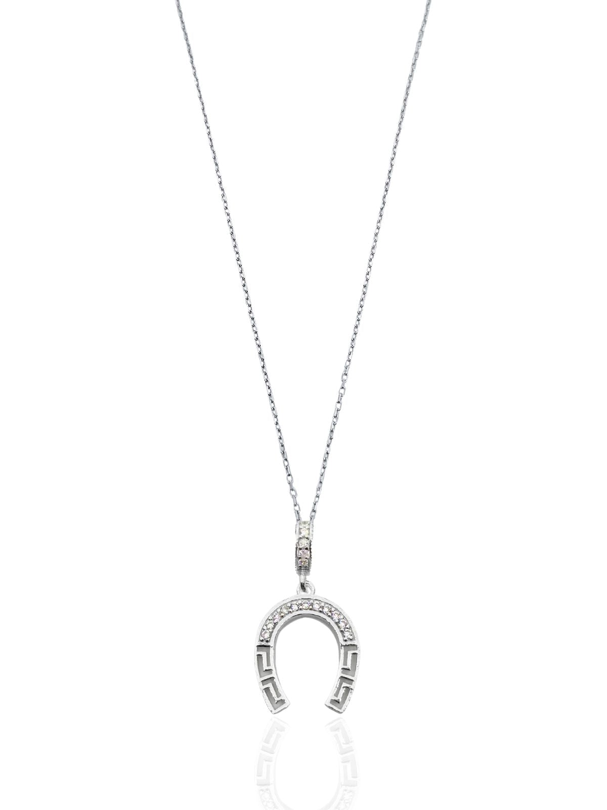 Taşlı Grek Desenli Gümüş At Nalı Kadın Kolye 1.4x2.5cm