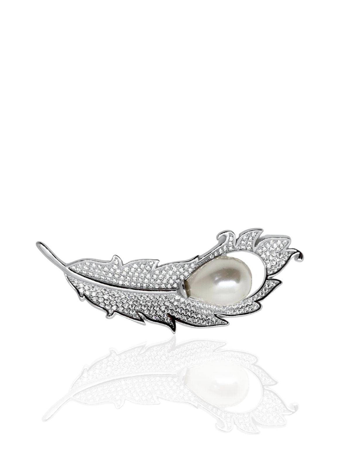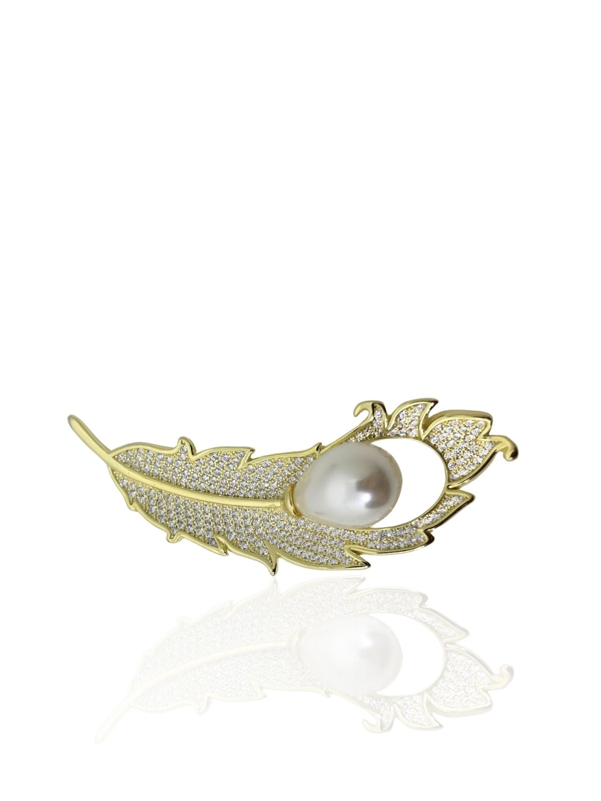 İncili Gümüş Kuş Tüyü Broş 5.5x1.7cm