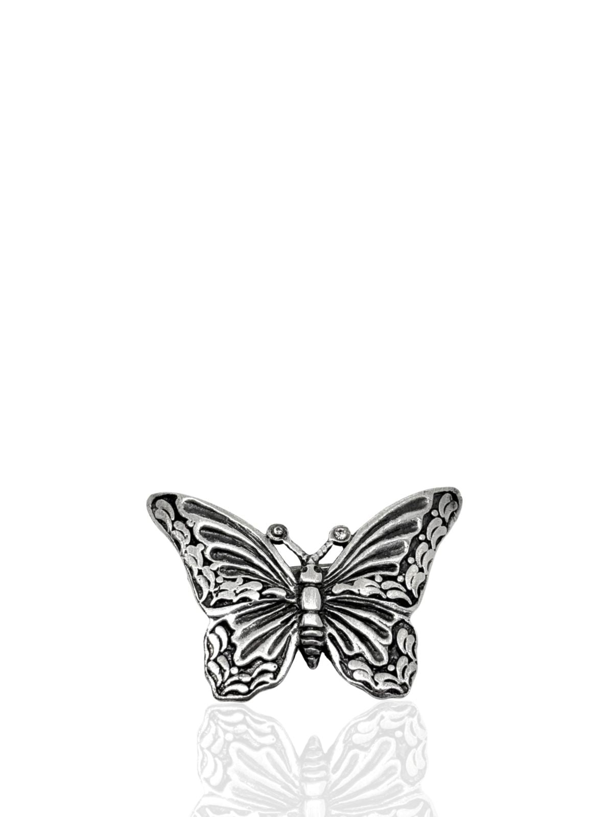 Karartılmış Otantik Gümüş Kelebek Broş