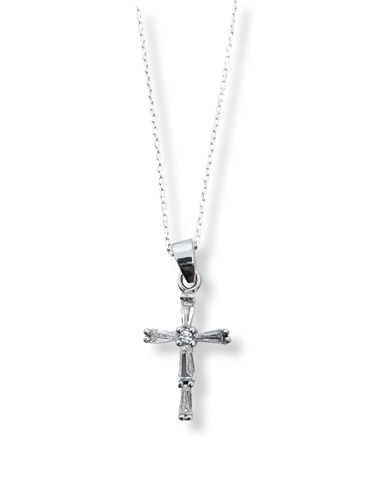 Baget Taşlı Haç Gümüş Kadın Kolye-HCK11