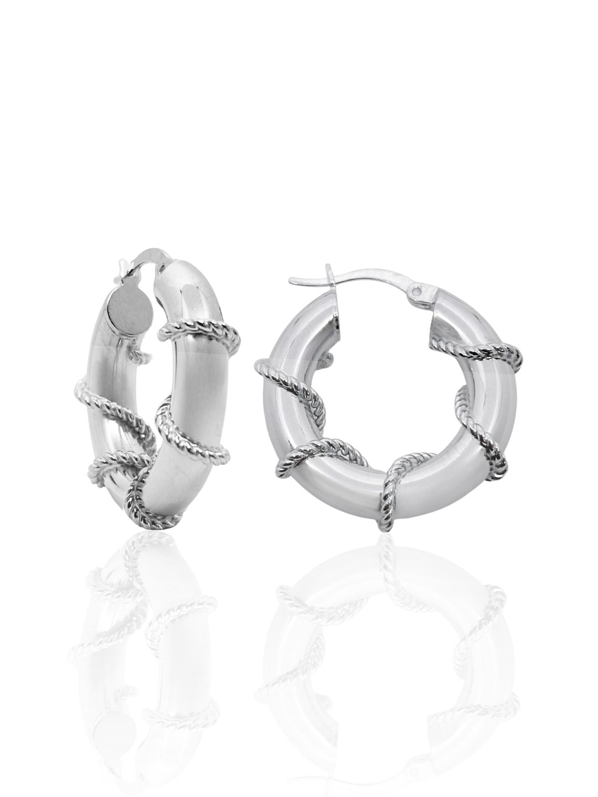 Halat Sarılı Gümüş Boru Halka Küpe 2.7x2.7 cm