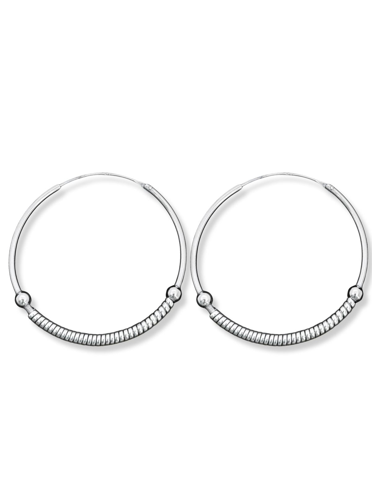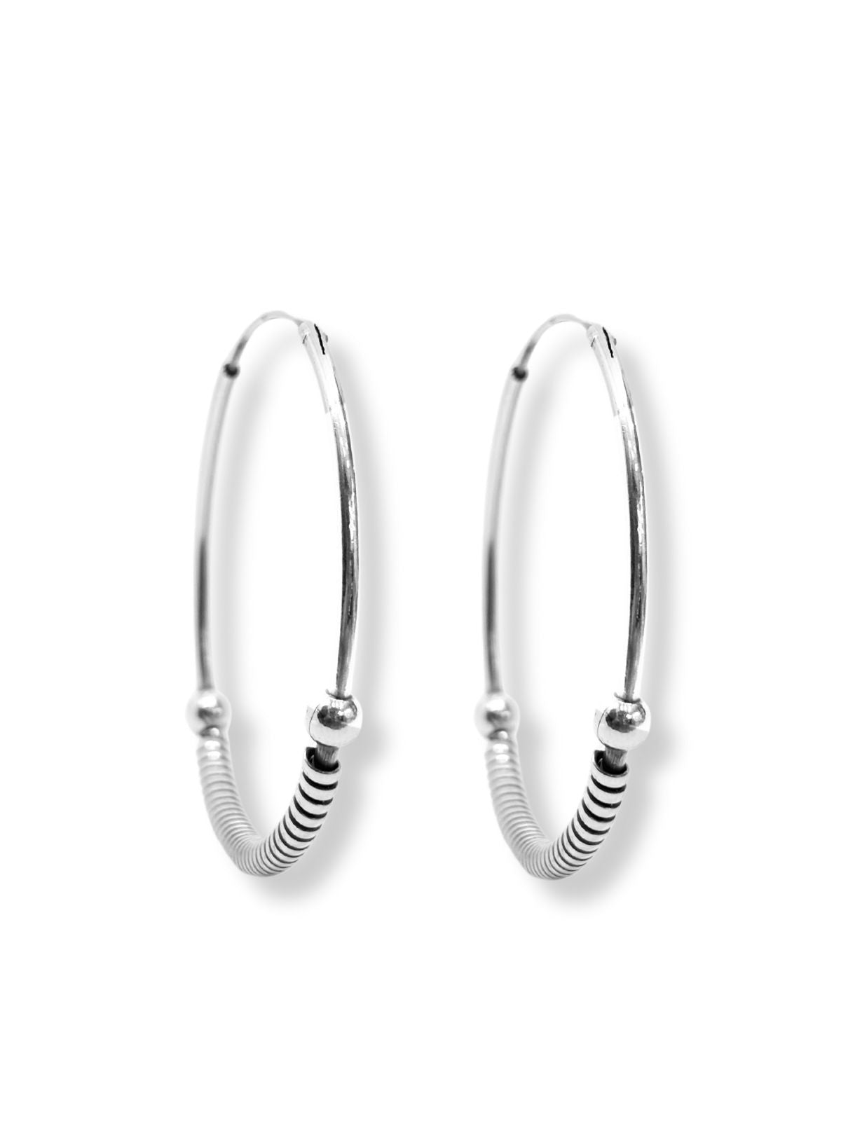 Tel Sarma Detaylı Gümüş Kadın Halka Küpe 4x4 CM
