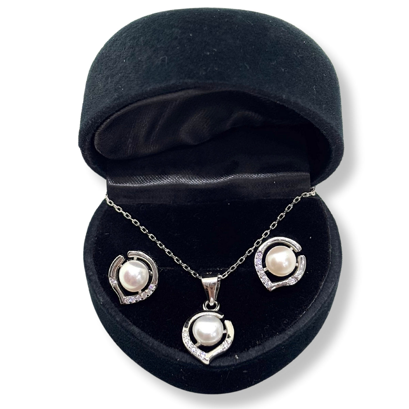 Işıltılı Damla Çerçeveli İnci Gümüş Set&Takım