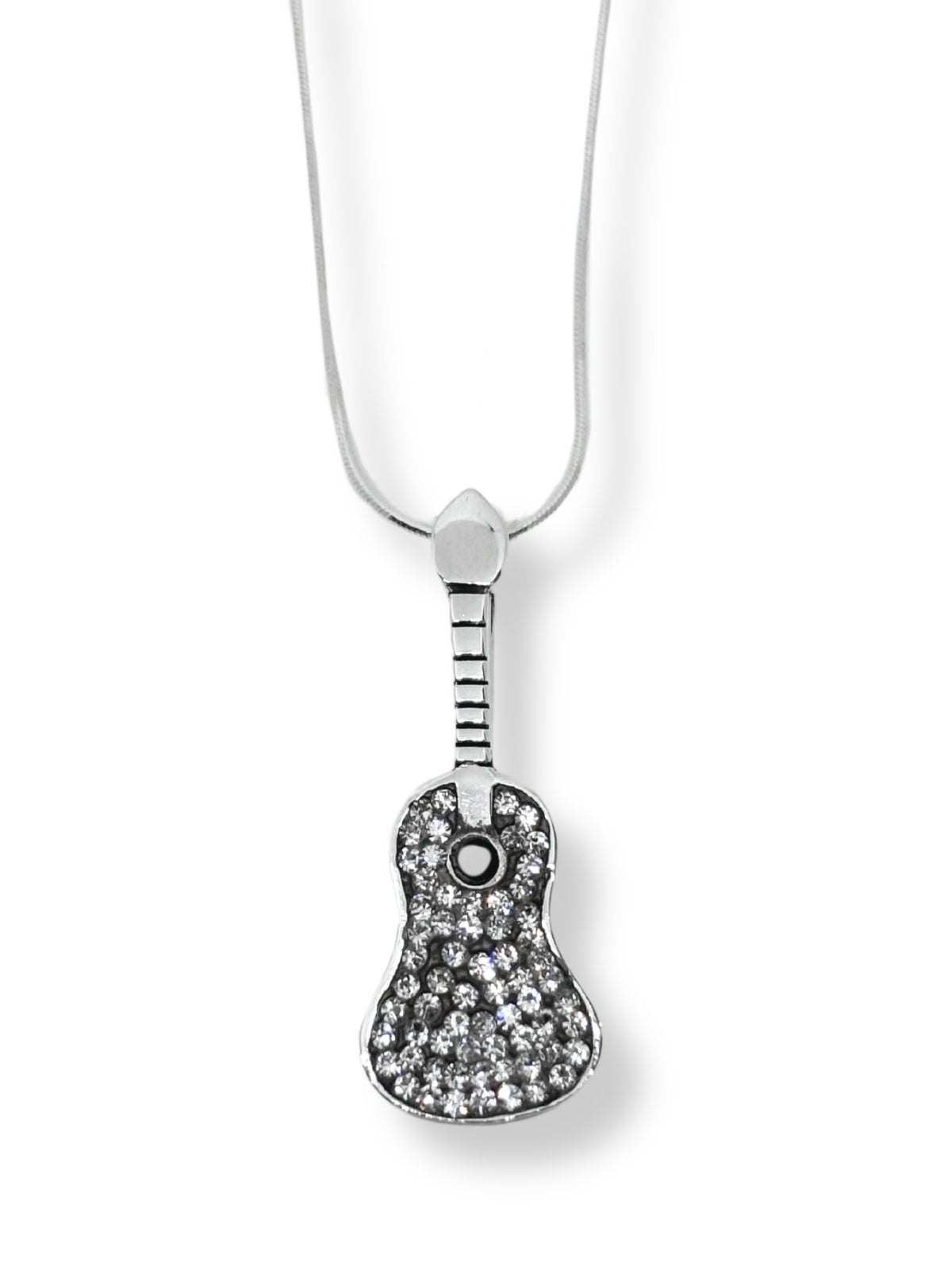 Beyaz Işıltılı Akustik Gitar Gümüş Kolye
