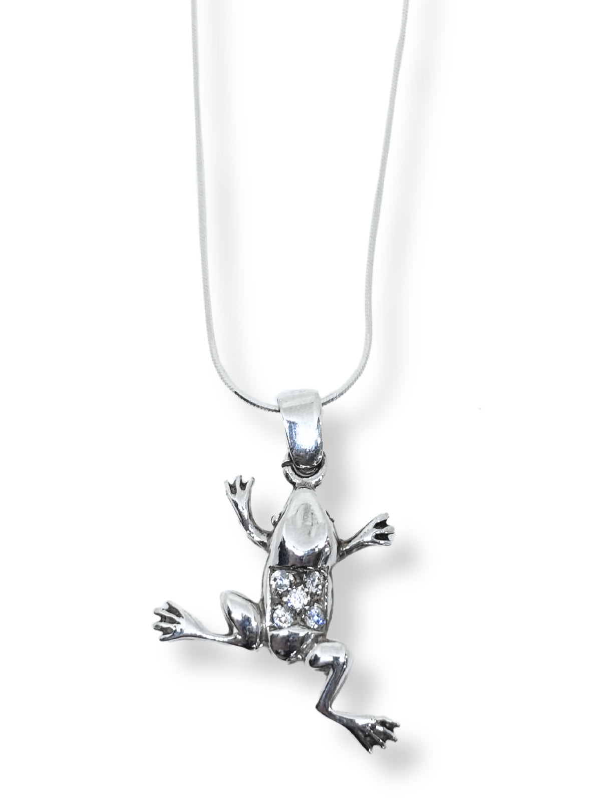 Beyaz Işıltılı Kurbağa Gümüş Kadın Kolye