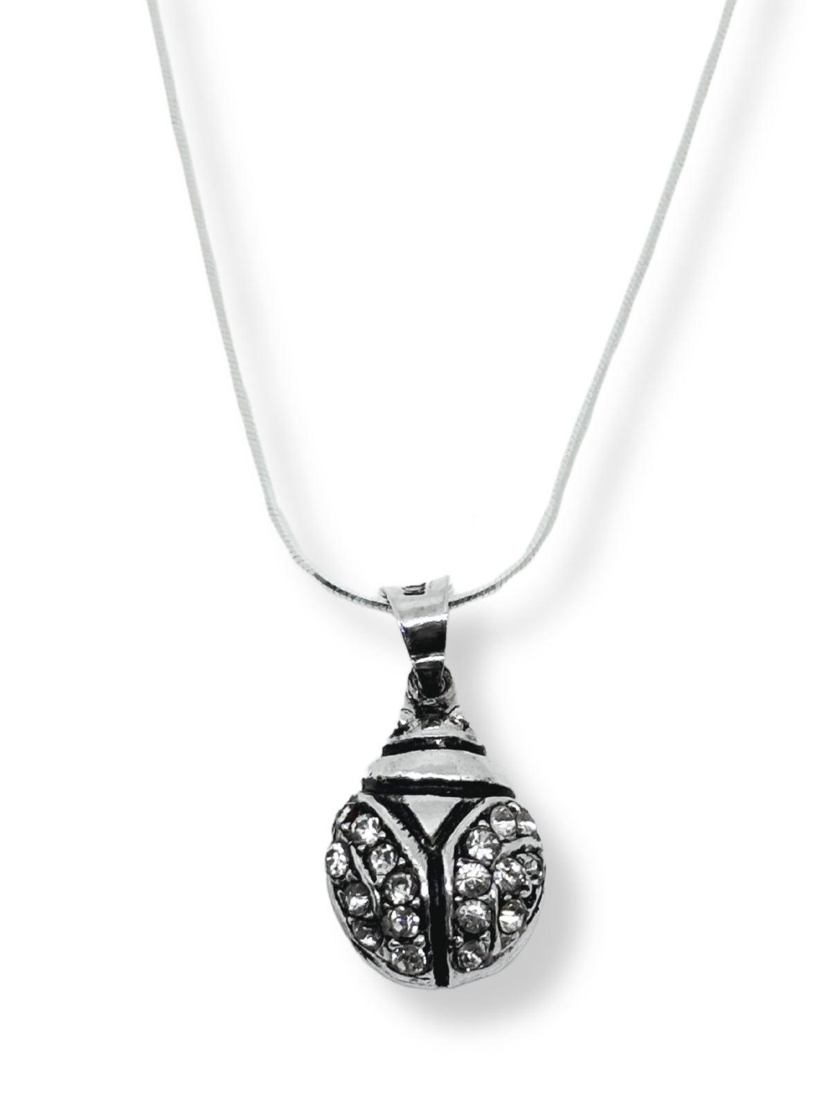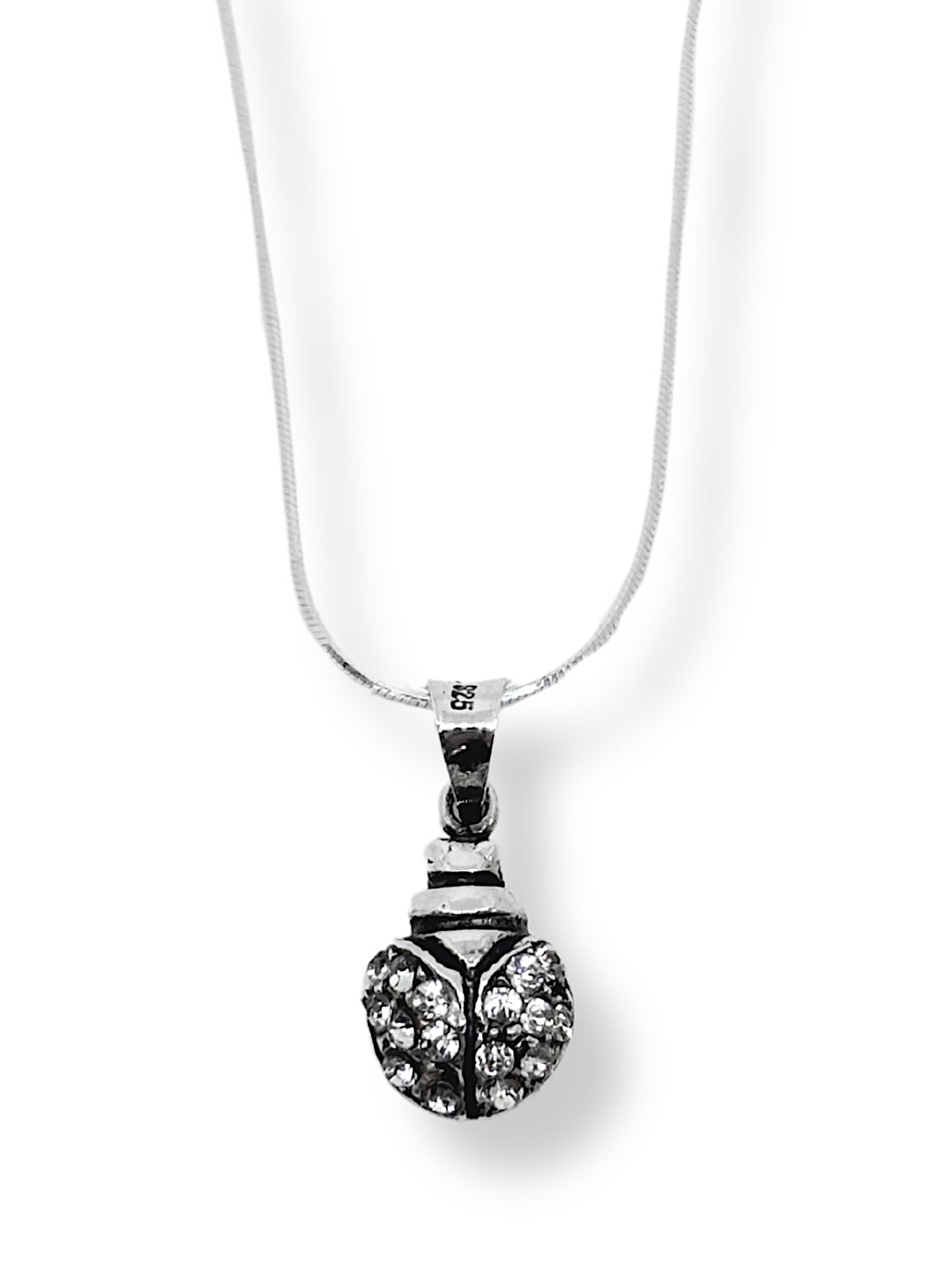 Beyaz Işıltılı Uğur Böceği Gümüş Kadın Kolye