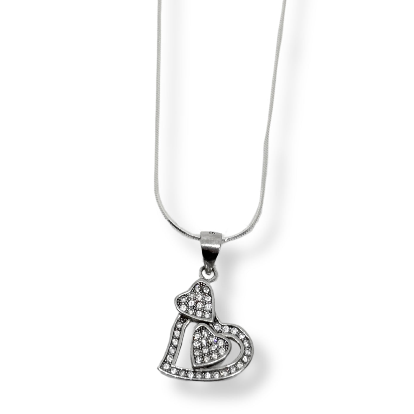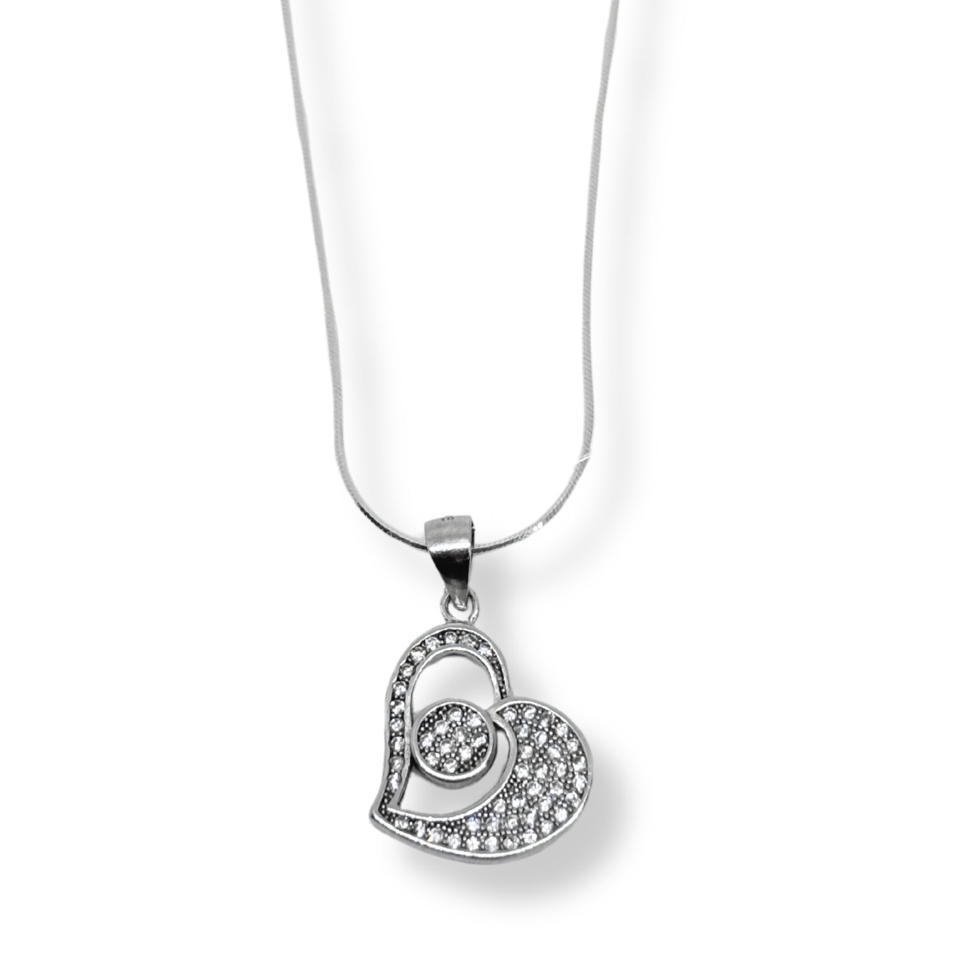 Beyaz Kum Işıltılı Kalp Gümüş Kadın Kolye