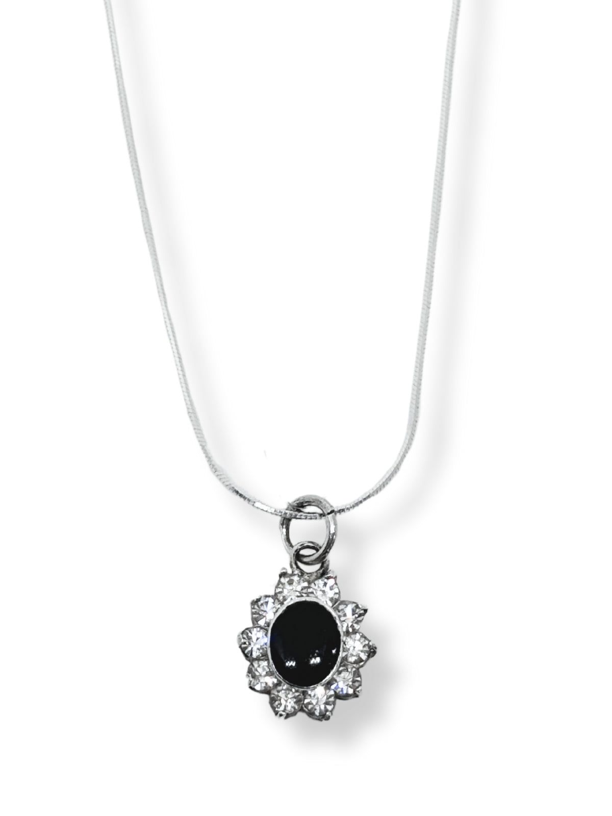 Mini Beyaz Baget Işıltılı Çevrili Oval Oniks Gümüş Kadın Kolye