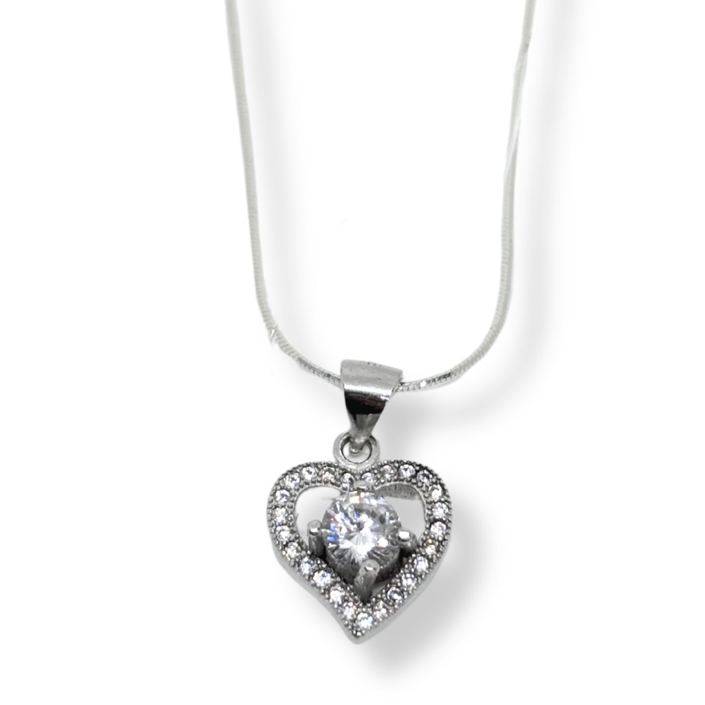 Mini Beyaz Kum Işıltılı Tek Taşlı Kalp Gümüş Kadın Kolye