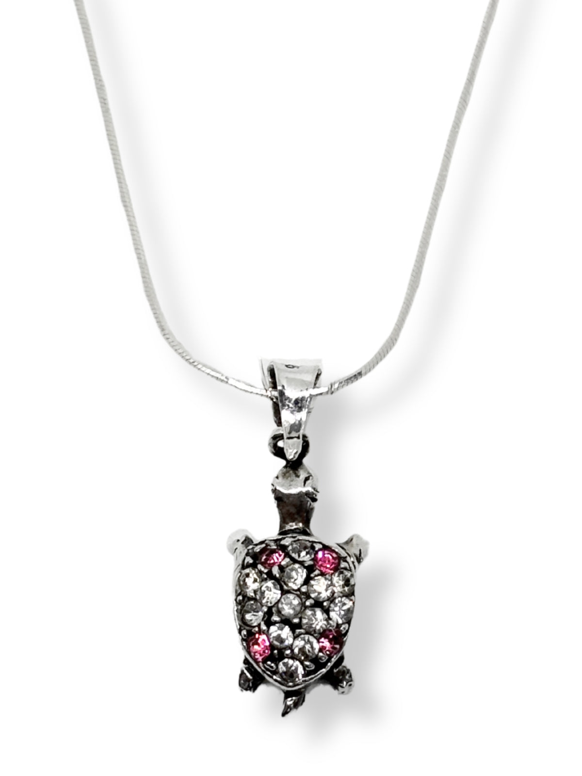 Mini Pembe&Beyaz Işıltılı Kaplumbağa Gümüş Kolye ile doğanın enerjisini stilinize taşıyın!