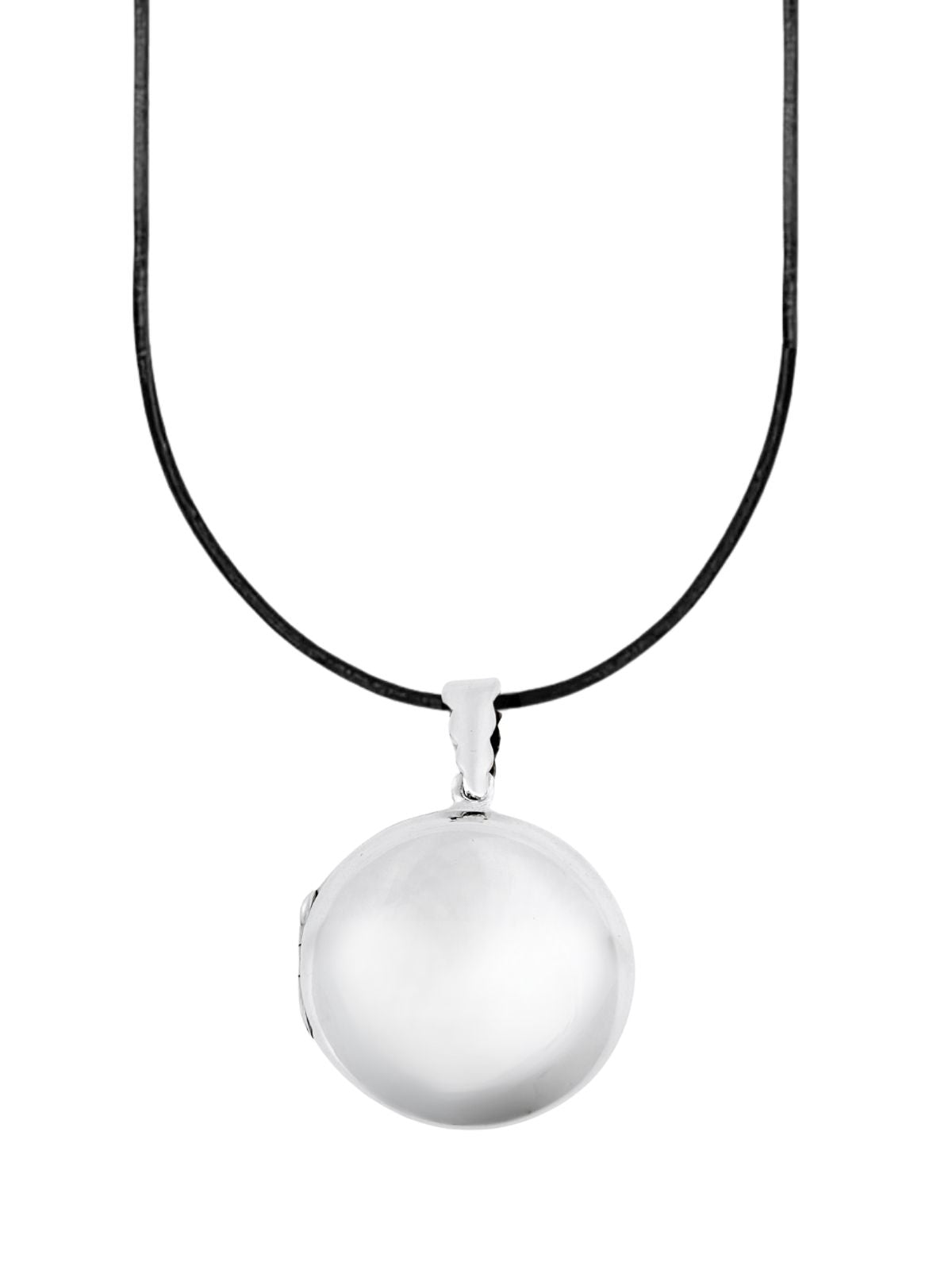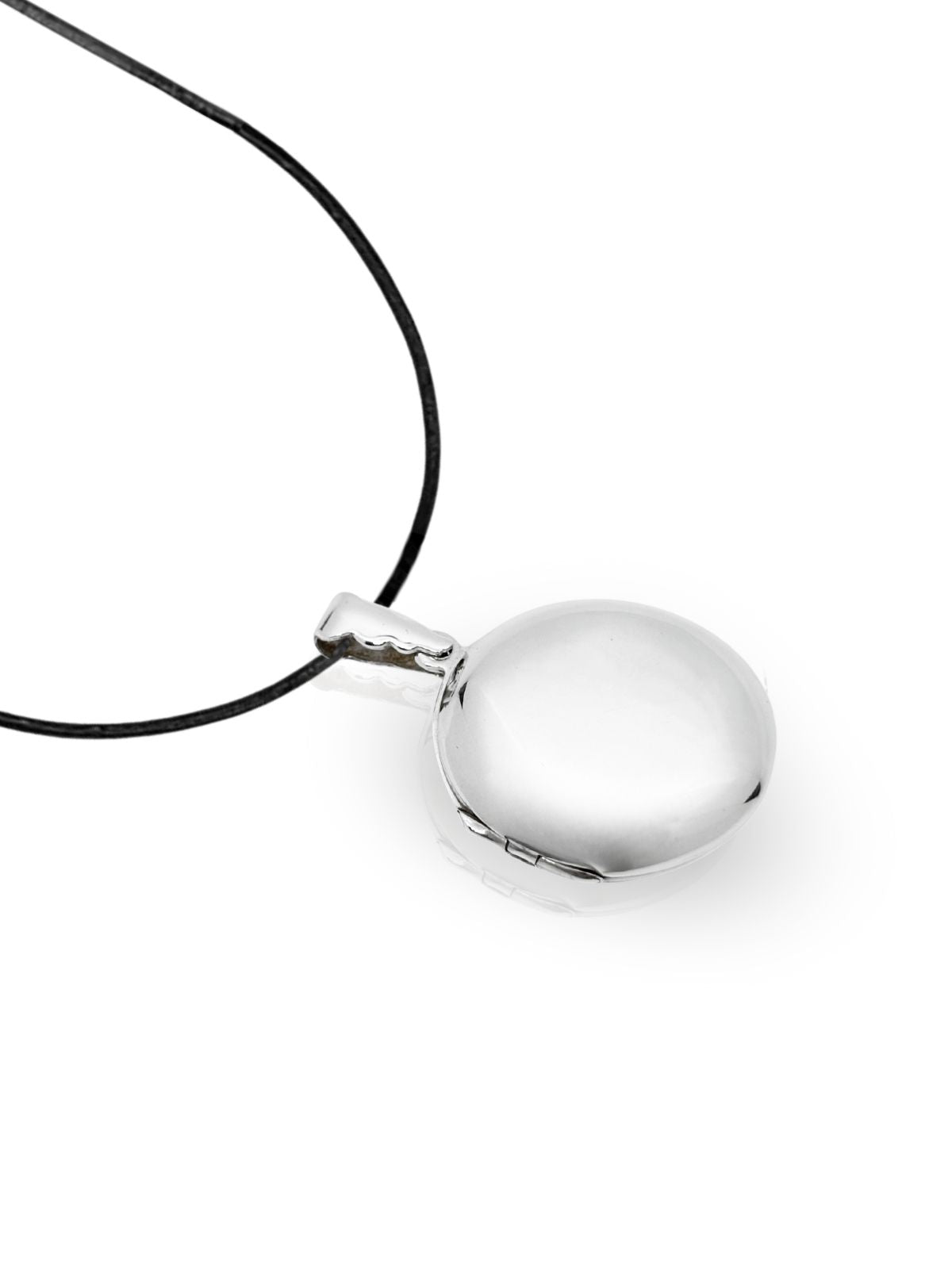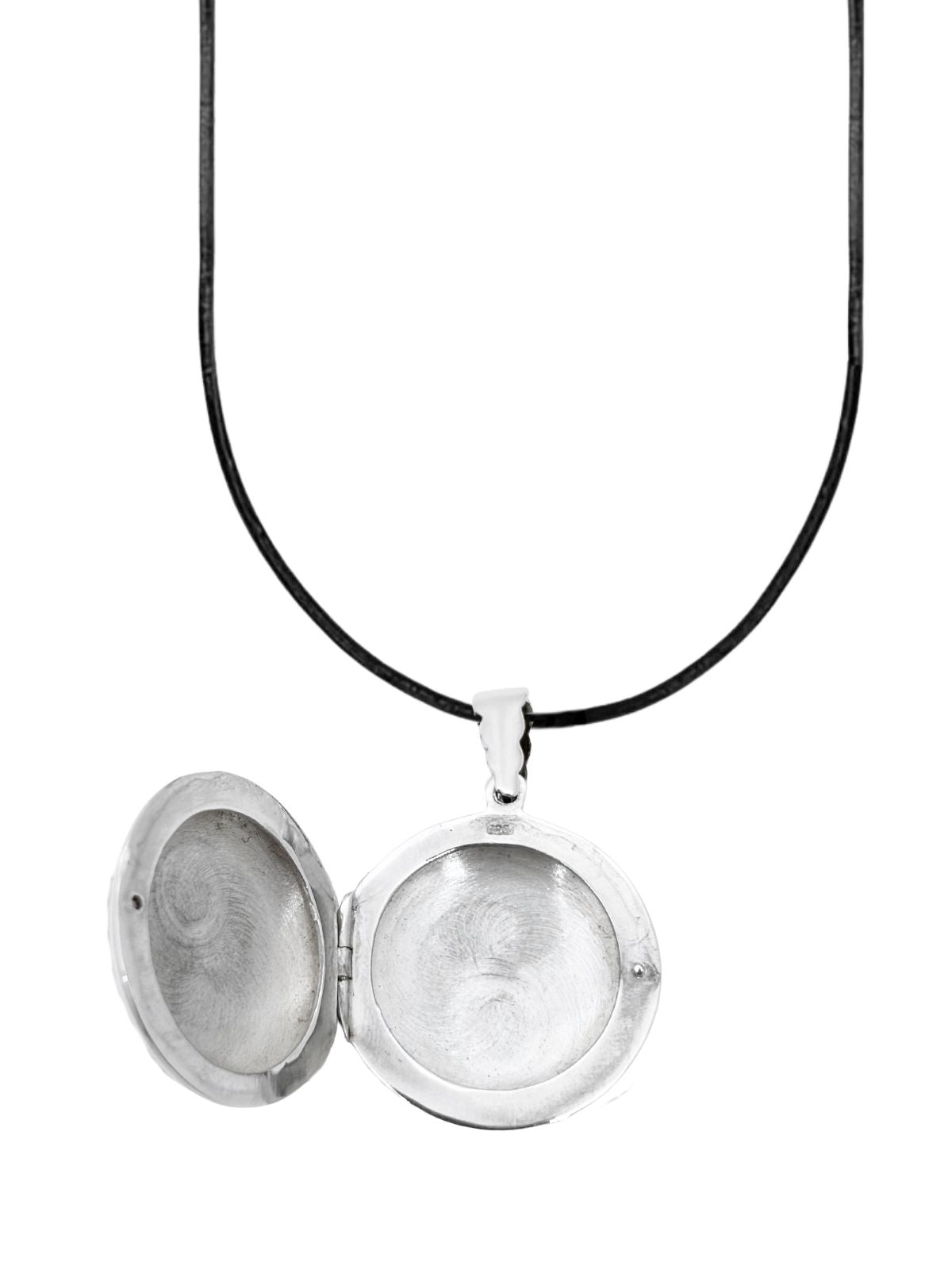 Bombeli Yuvarlak Kapaklı Gümüş Fotoğraf Kolye 4x2.8cm