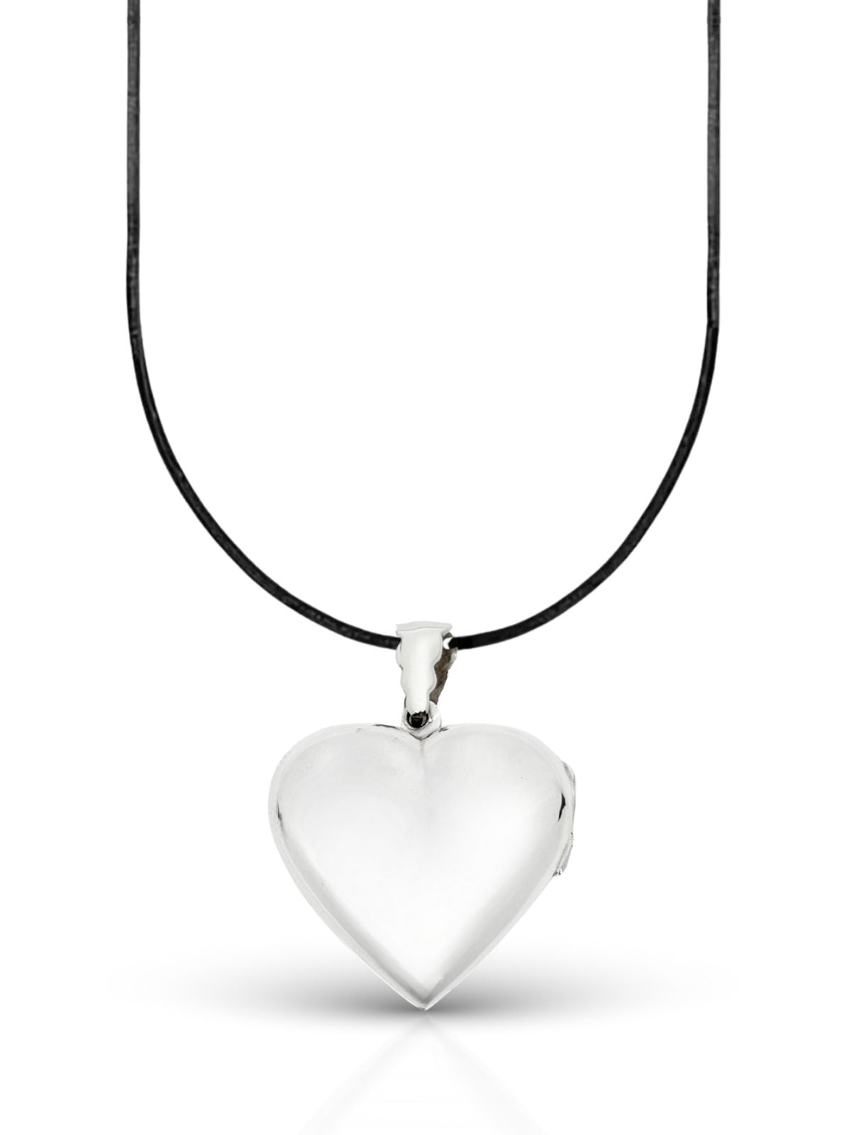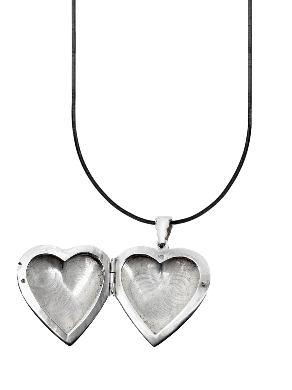 Parlak Bombeli Kalp Kapaklı Gümüş Kolye 4x3 cm