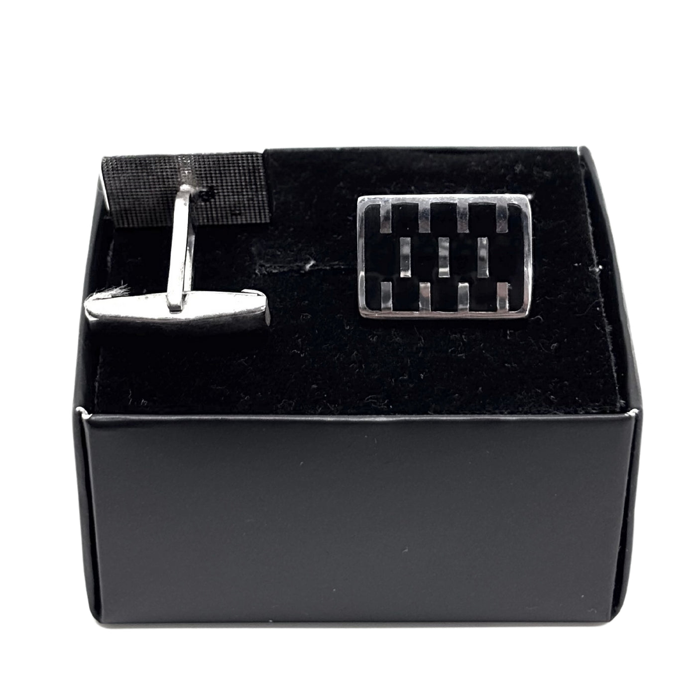 Gümüş Dikdörtgen Siyah Mineli Dama Elegansı Kol Düğmesi