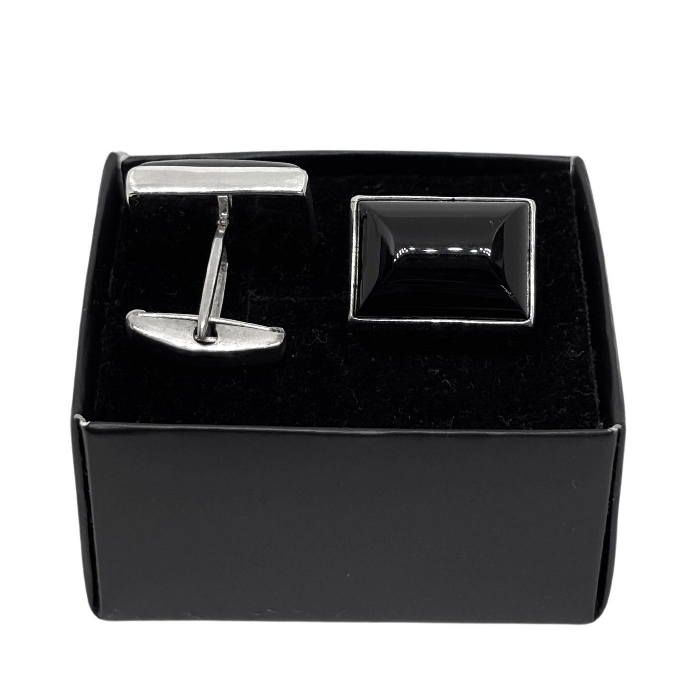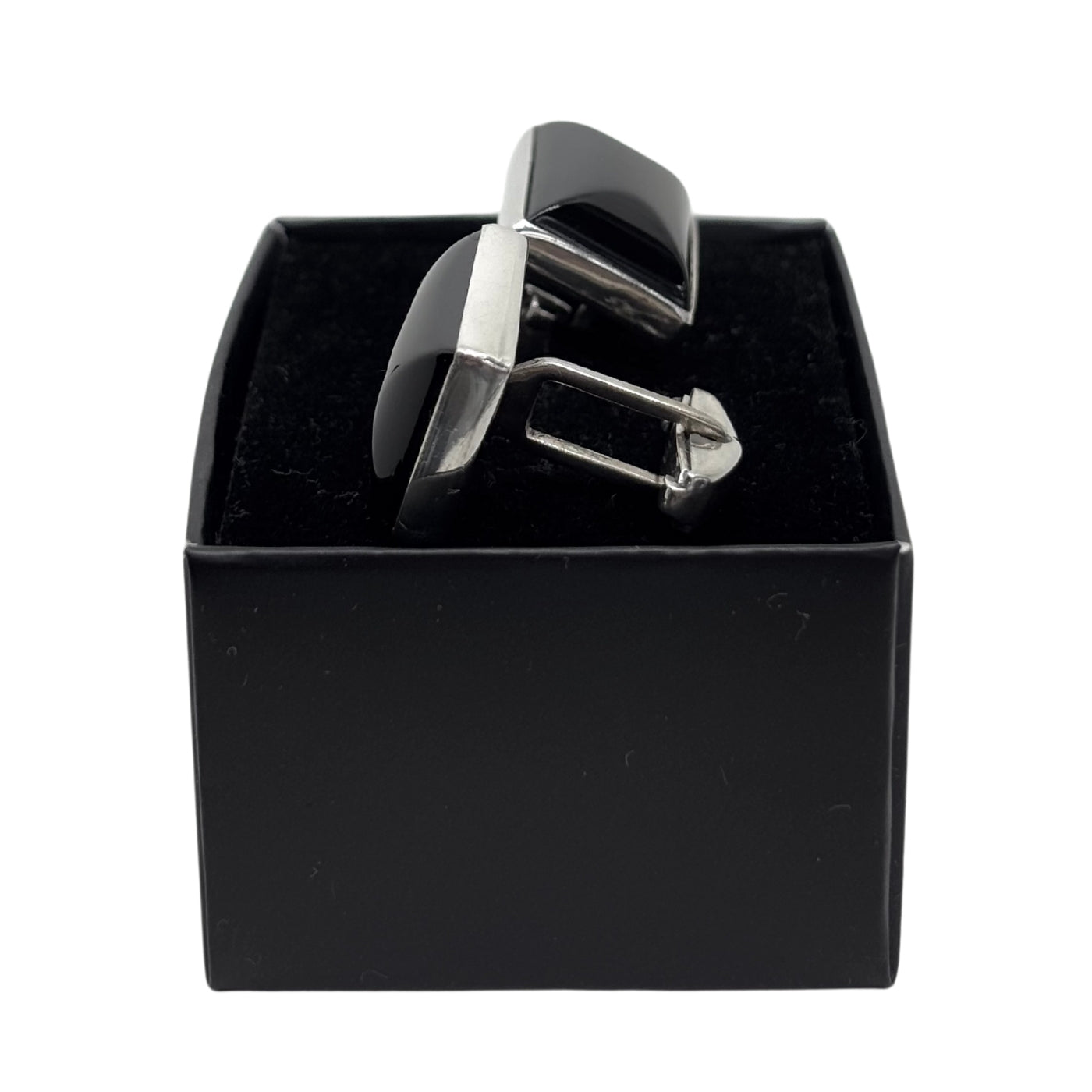 Gümüş Siyah Dikdörtgen Büyük Oniks Taşlı Kol Düğmesi – Şıklığın ve Gücün Buluşması