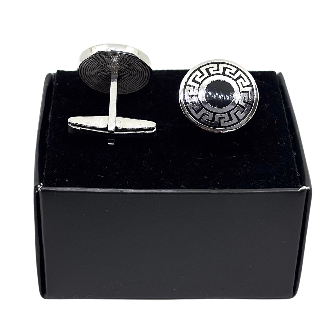 Gümüş Siyah Grek Desenli Gümüş Kol Düğmesi
