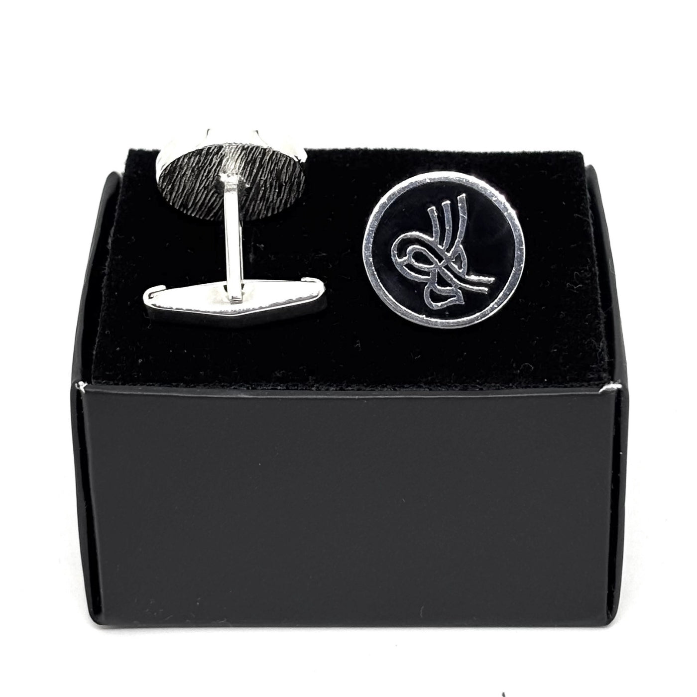 Yuvarlak Siyah Mineli Gümüş Tura Kol Düğmesi