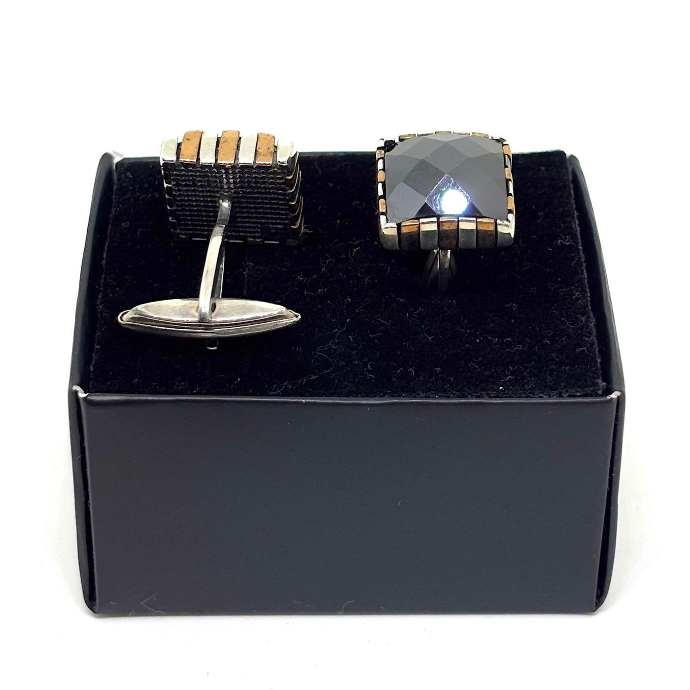 Oniks Taşlı Rose Hatlı Gümüş Kol Düğmesi ile Tarzınızı Yansıtın