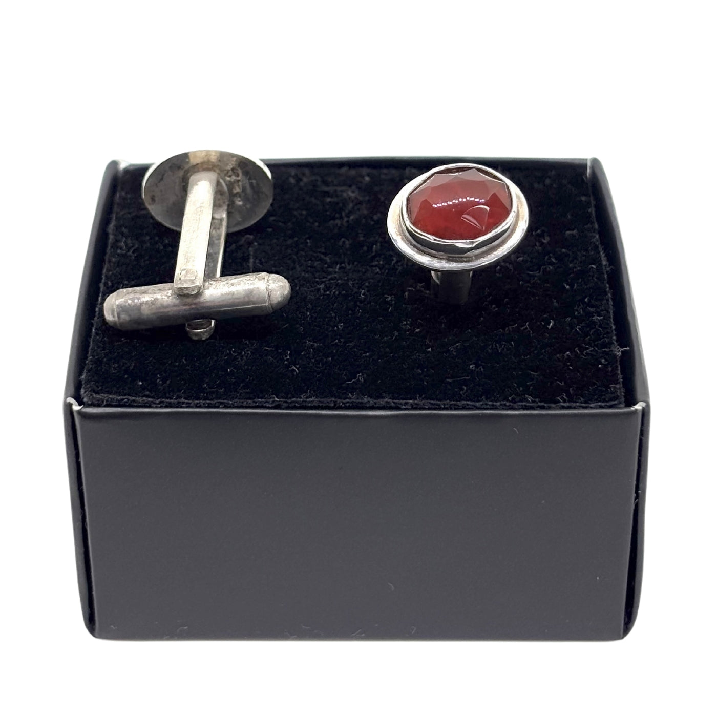 Yuvarlak Kesme Akik Taşı Gümüş Kol Düğmesi