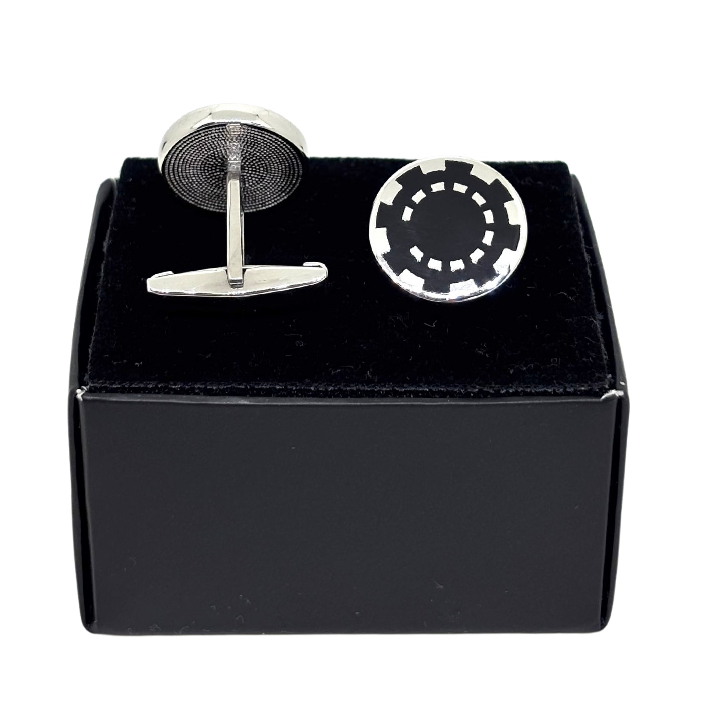 Yuvarlak Siyah Mineli Gümüş Kol Düğmesi