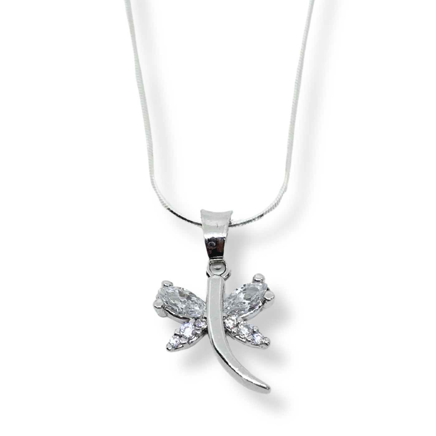 Beyaz Baget Işıltılı Gümüş Yusufçuk Kolye