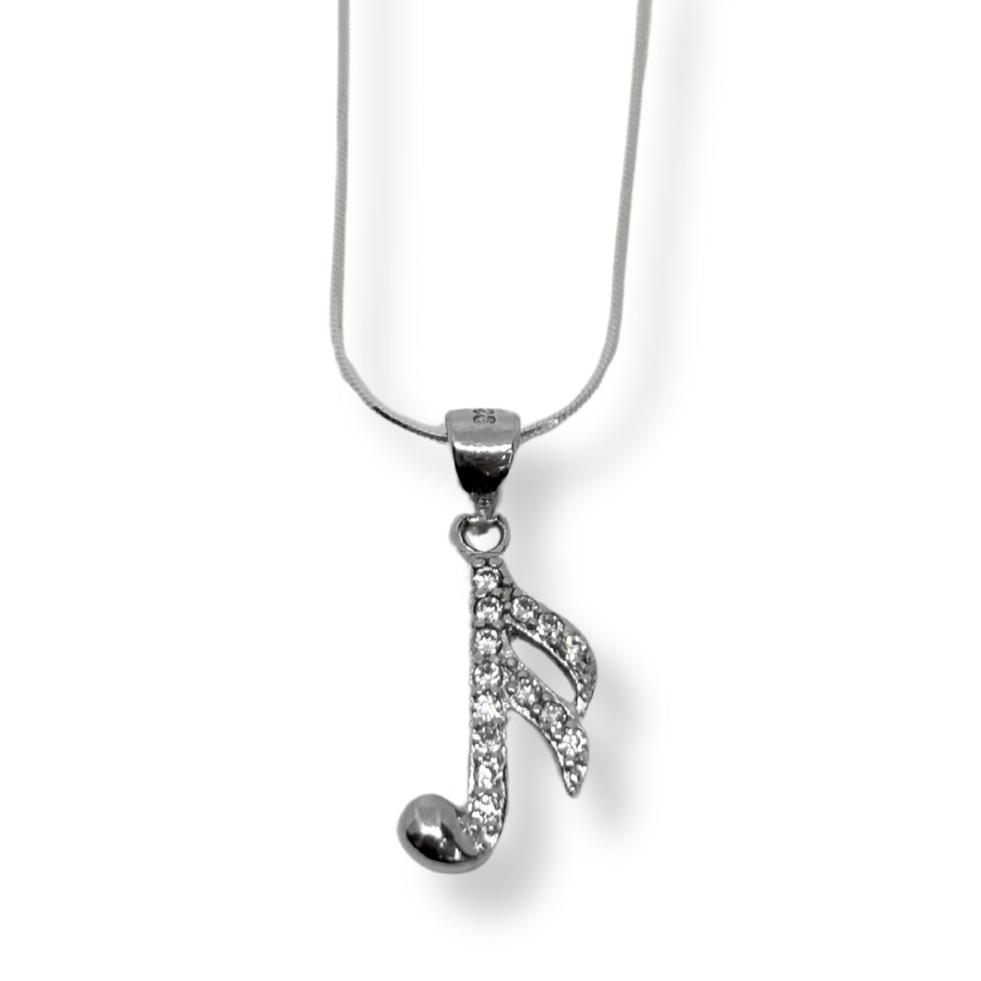 Beyaz Işıltılı Sol Anahtarı Gümüş Kadın Kolye