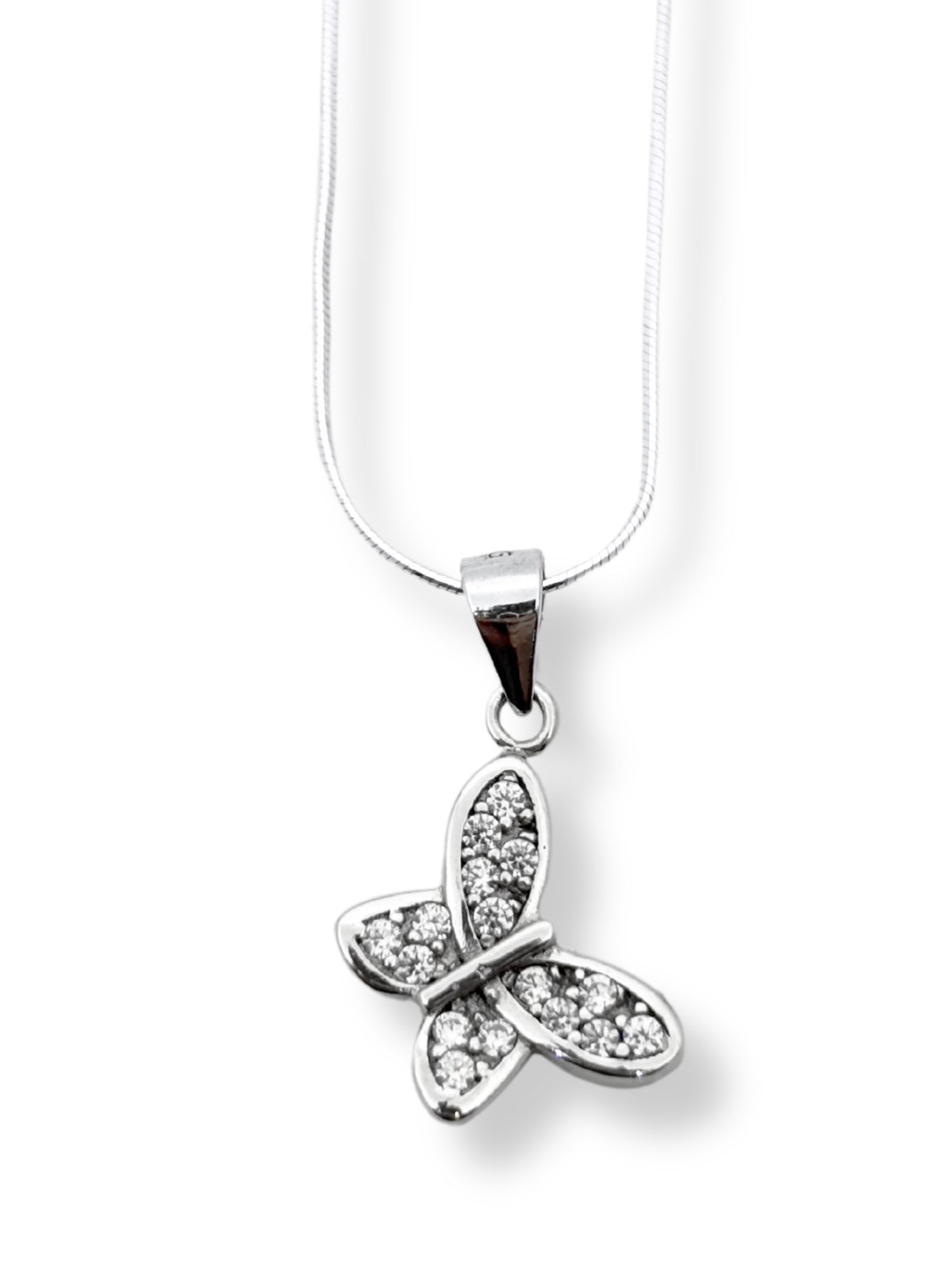 Mini Beyaz Kum Işıltılı Asılı Kelebek Gümüş Kadın Kolye