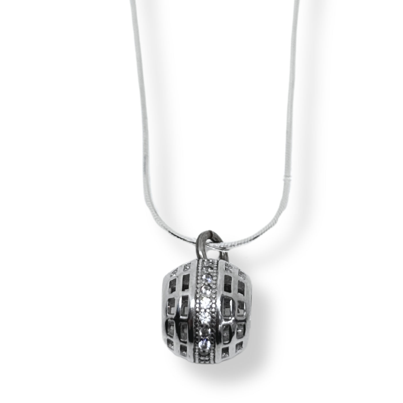 Mini Beyaz Kum Işıltılı Yuvarlak Charm Gümüş Kadın Kolye