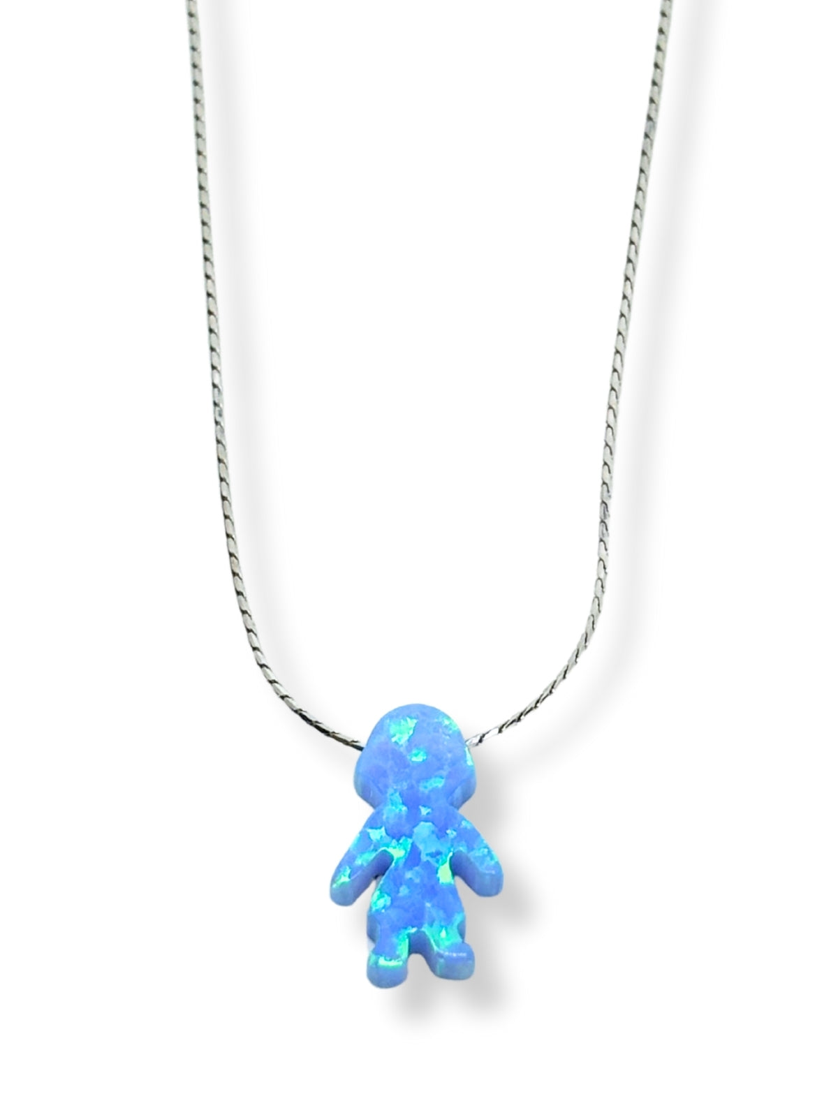 Mini Turkuaz Opal Işıltılı Çocuk Figürlü Gümüş Kadın Kolye