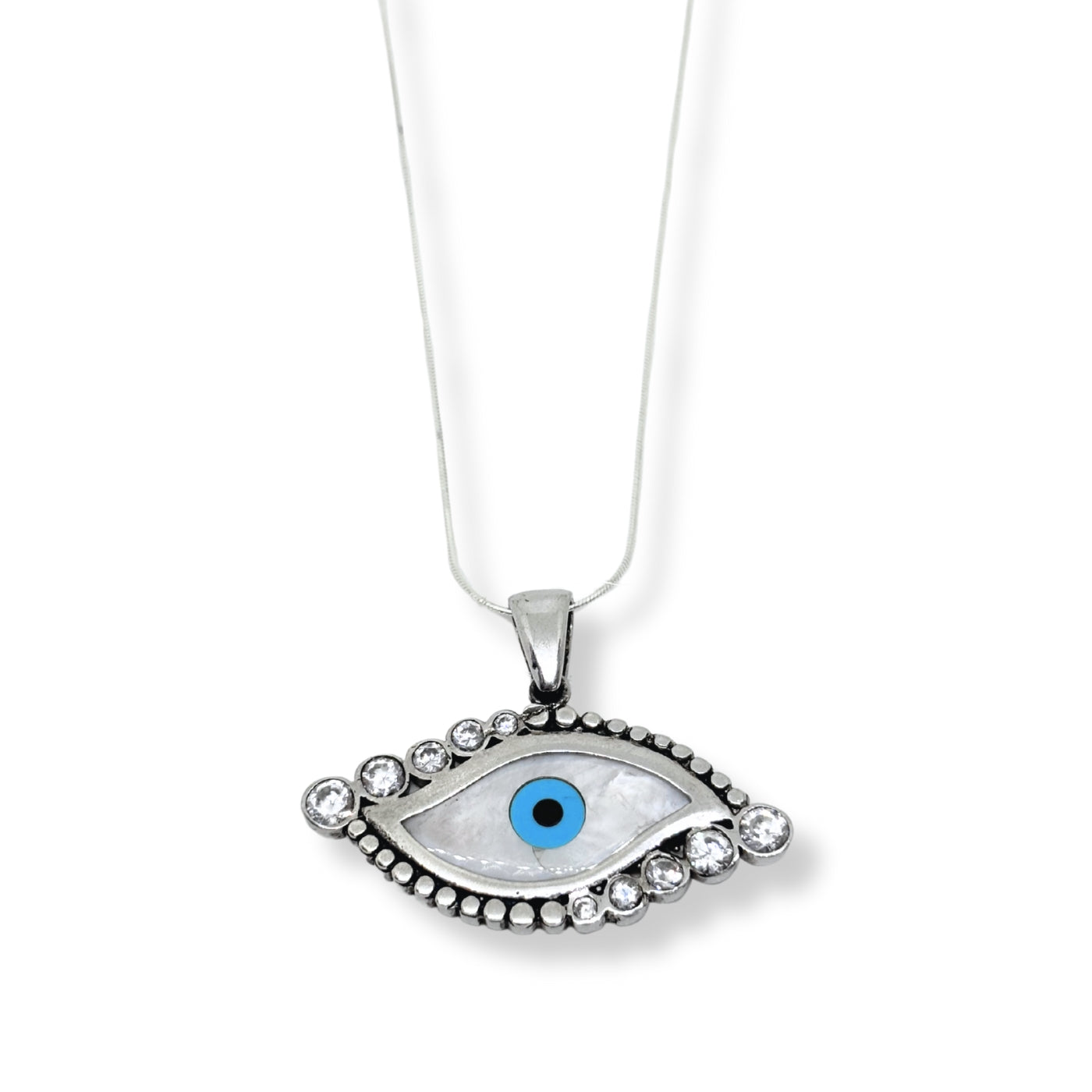 Beyaz Işıltılı Beyaz Göz Nazar Gümüş Kolye – Koruma ve Işıltılı Zarafet