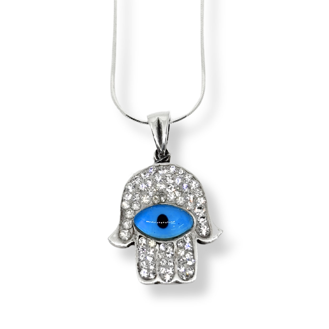 Beyaz Işıltılı Fatma Ana Eli Nazar Gümüş Kolye