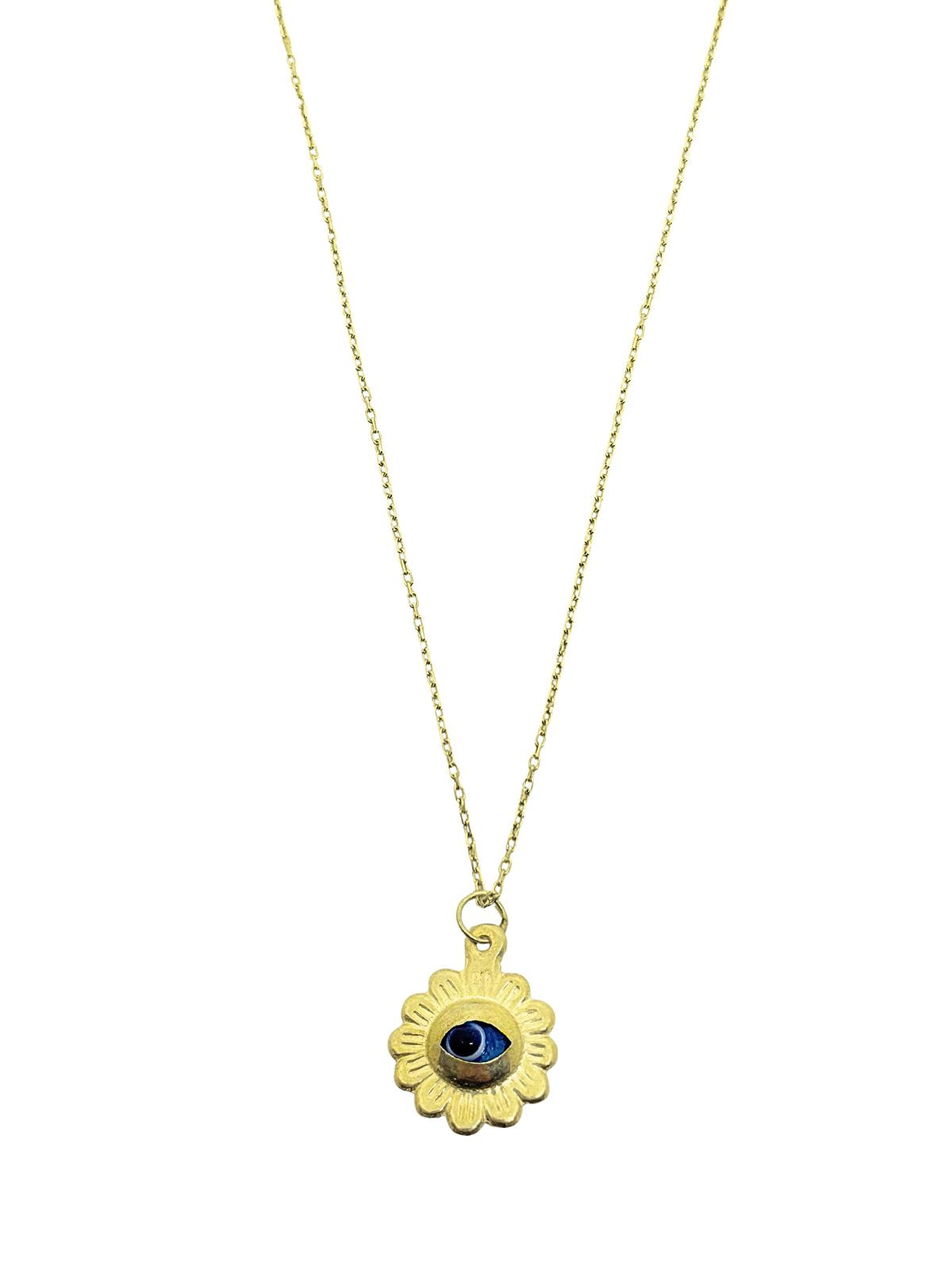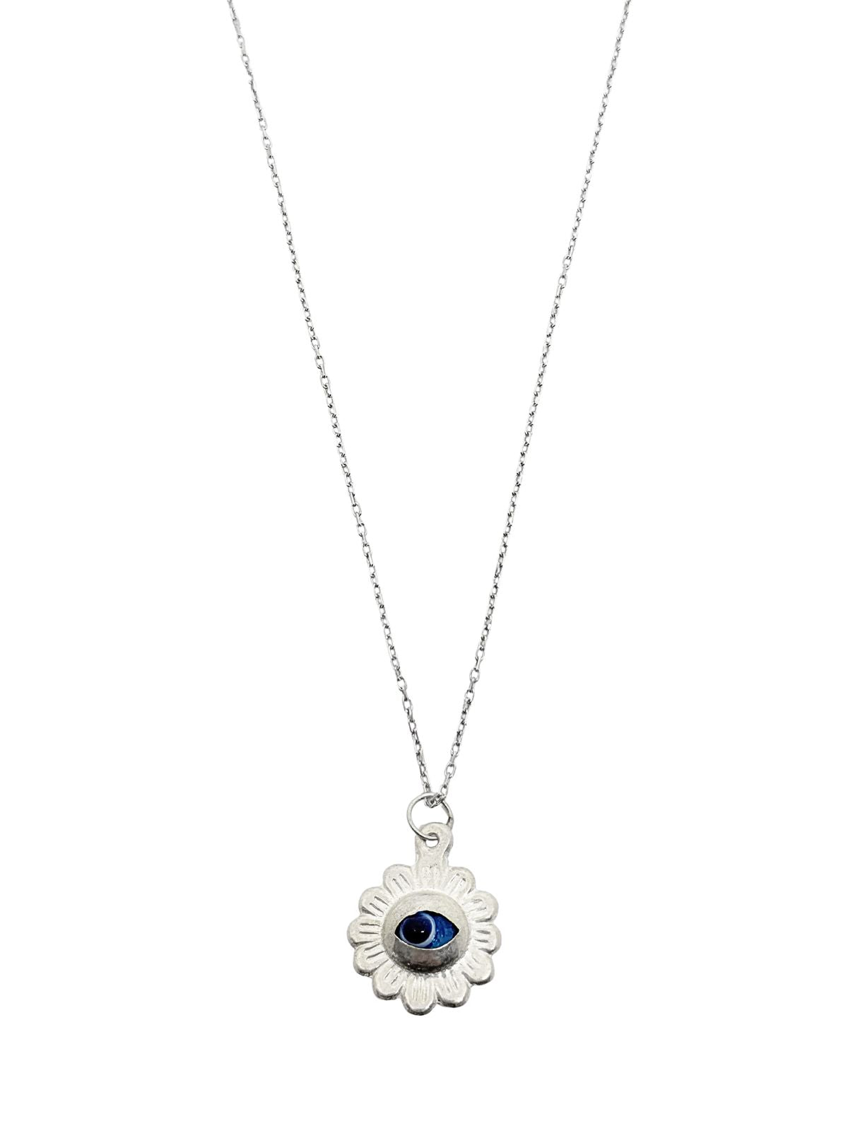 Çiçek Çerçeveli Gümüş Nazar Kolye