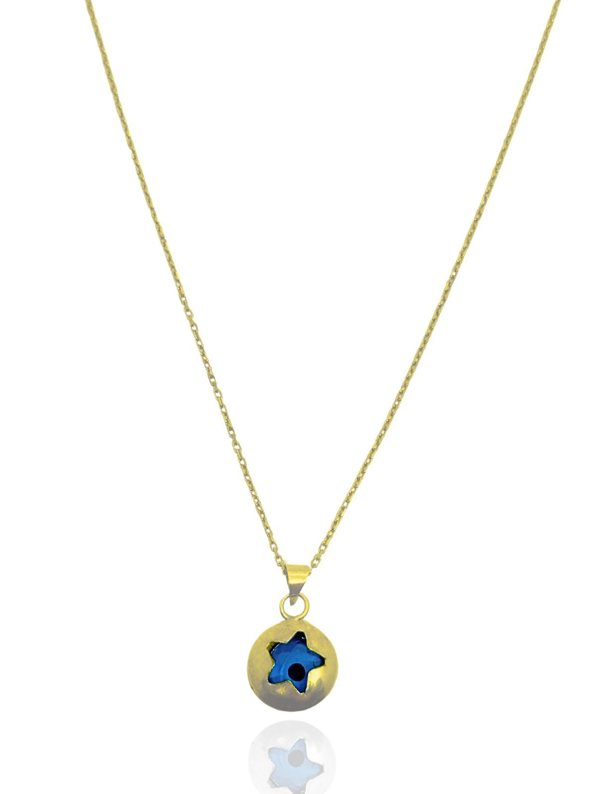 Minimal Yuvarlak Gümüş Yıldız Çerçevede Nazar Kolye