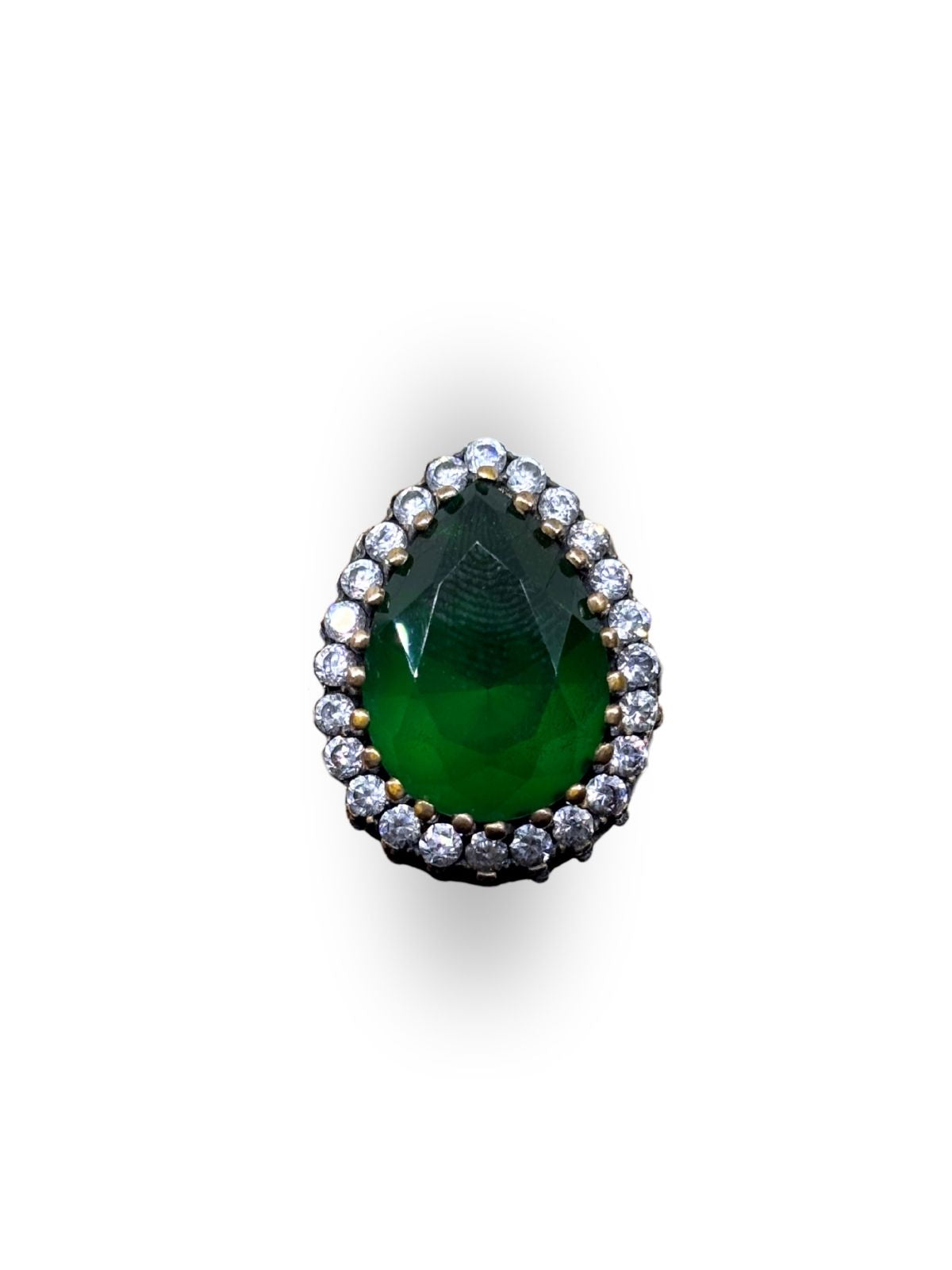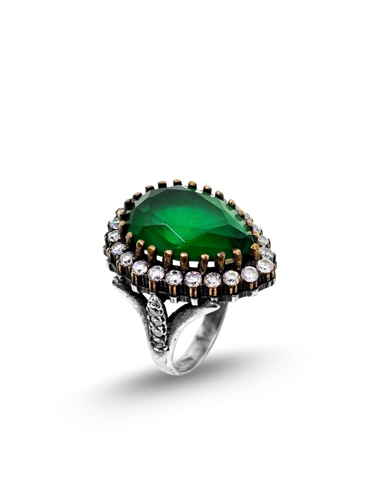 Göz alıcı yeşil taşı ve detaylı işçiliğiyle hem asil hem de iddialı bir görünüm sunar. Özel davetlerde, klasik kombinlerde ya da zarif bir hediye olarak tercih edilebilir.