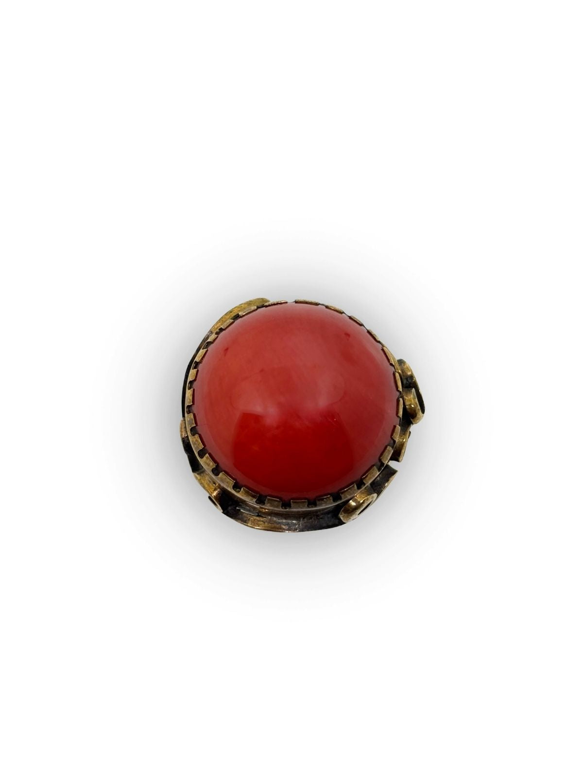 Otantik Doğal Mercan Taşlı Gümüş Vintage Kadın Yüzük